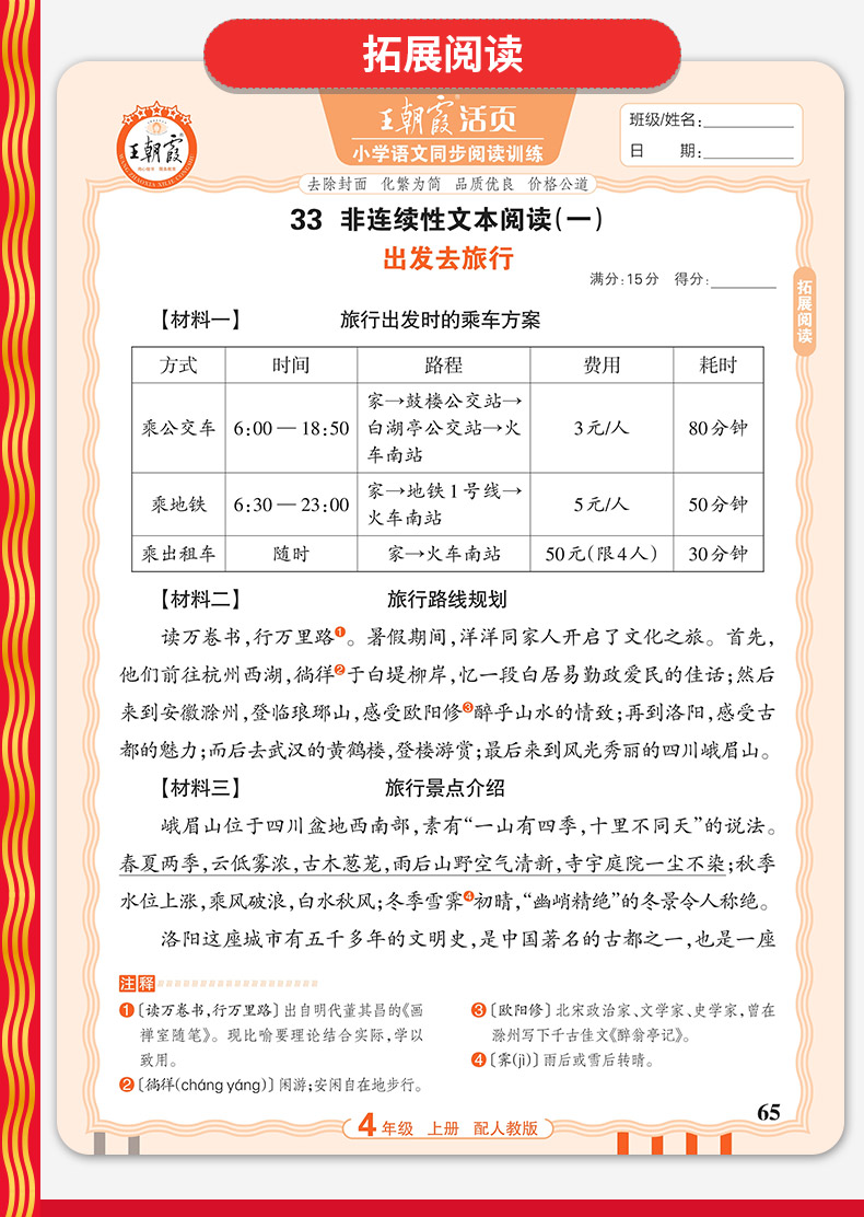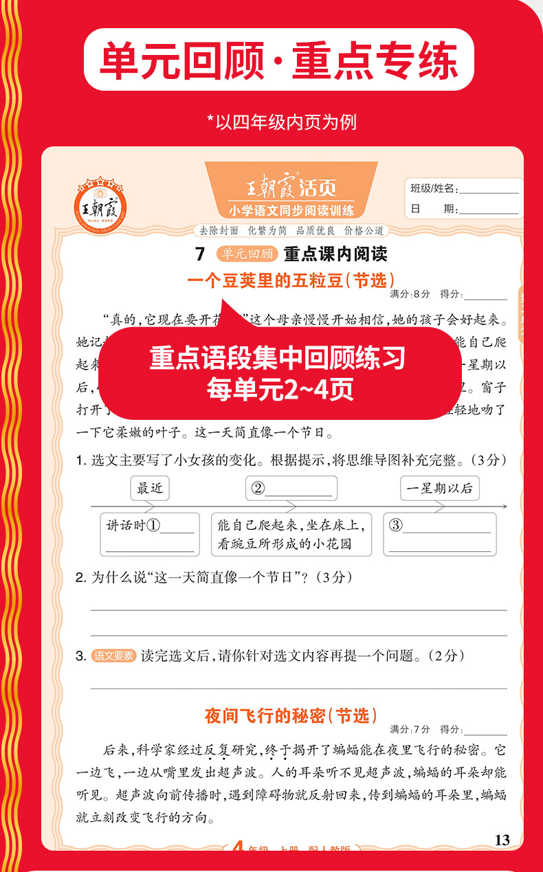 2025秋上王朝霞小学语文同步训练1-6年级语文阅读训练