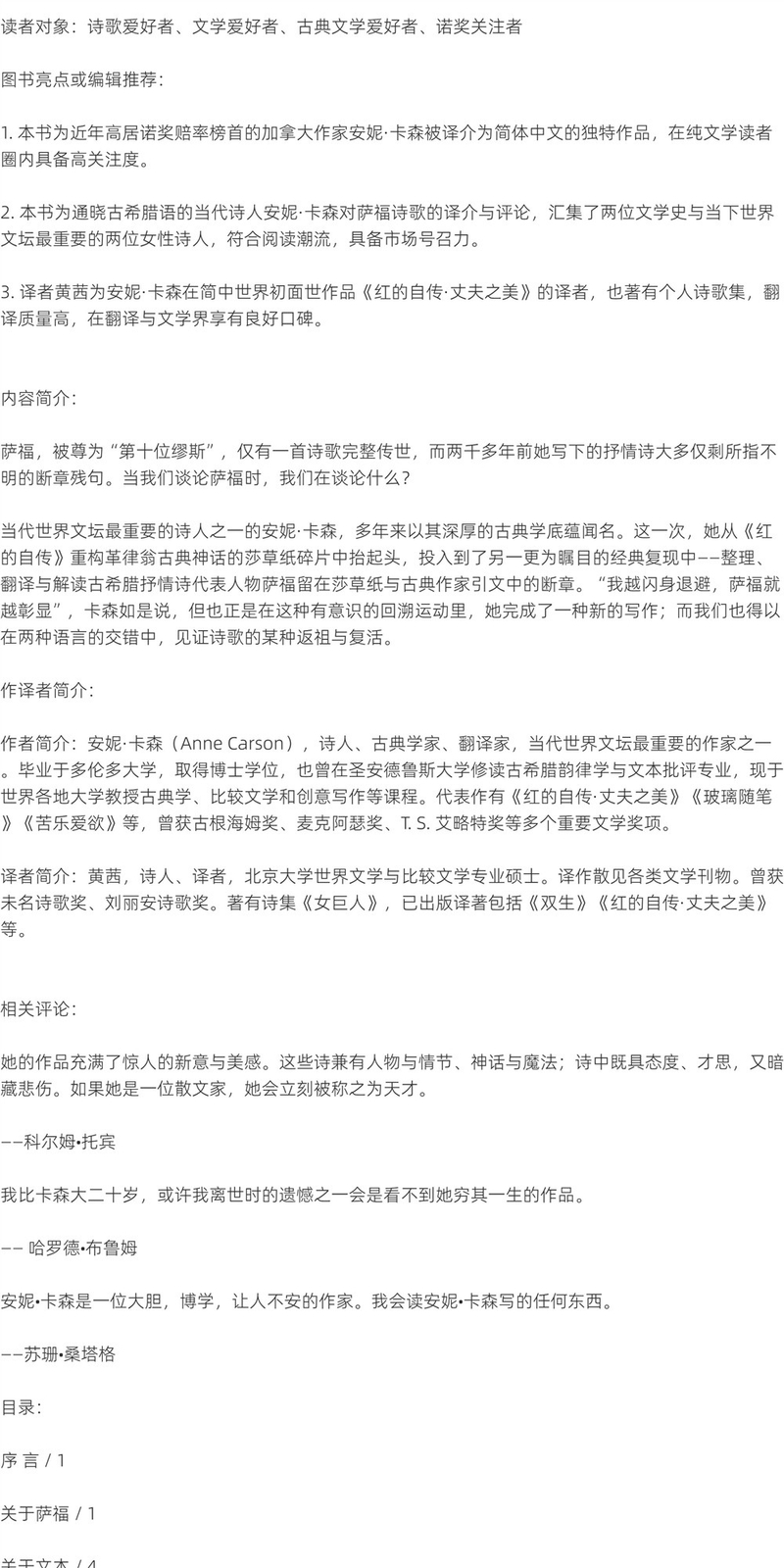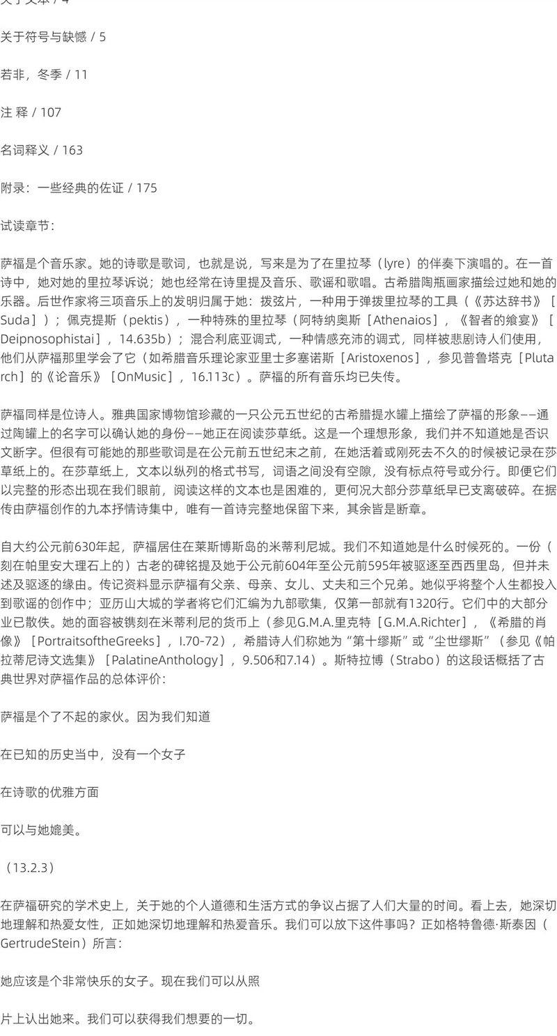 【赠冰箱贴】若非,冬季:萨福断章 [加]安妮卡森 著 黄茜 译