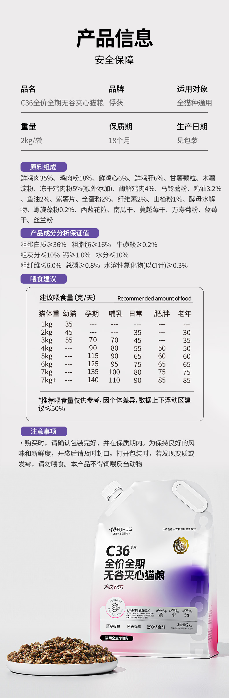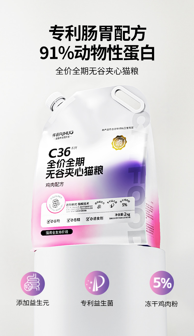 【限时8折】俘获C36猫粮鲜肉配方试吃装幼成猫粮无谷夹心宠物全价全期猫粮