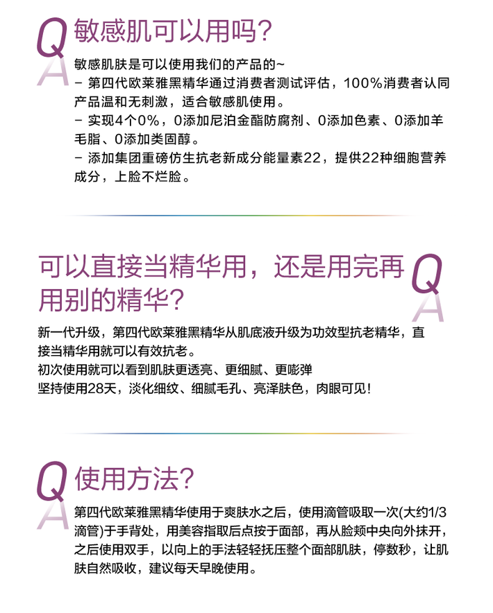 1.护肤品成分各有不同,敏感性肌肤的人士请先在耳后进行测试后再使用。