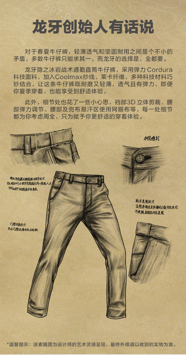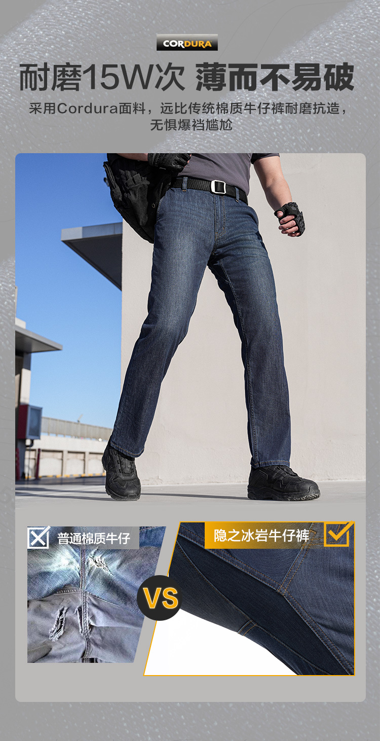 直筒龙牙隐之冰岩cordura战术通勤直筒牛仔裤