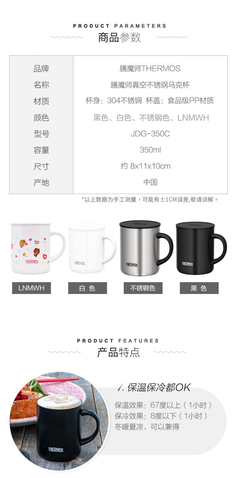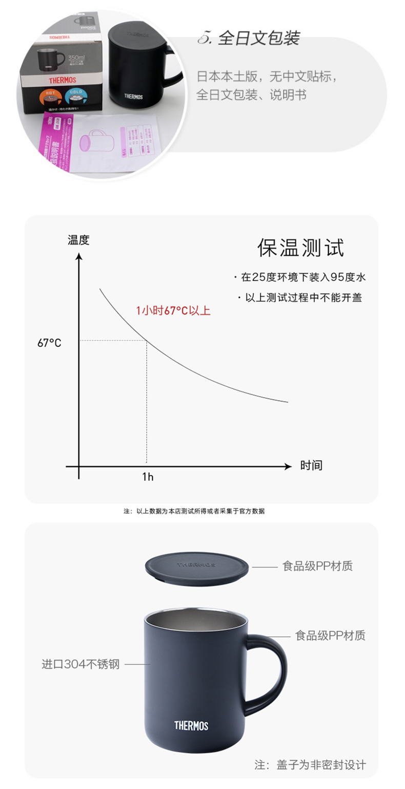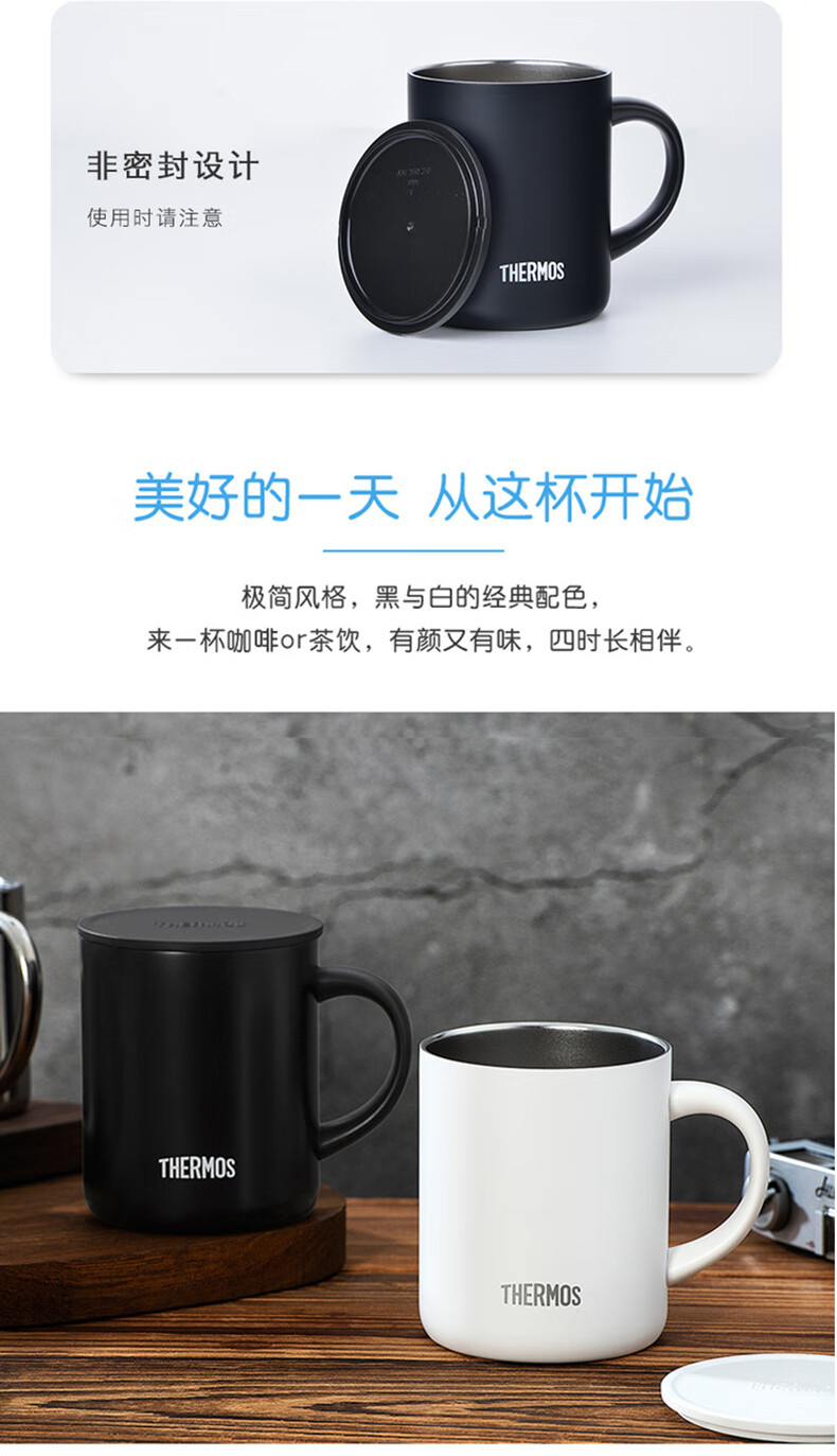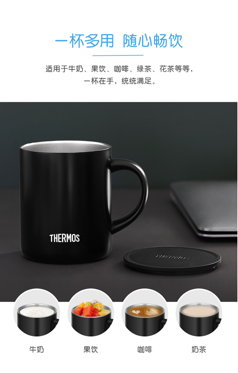 膳魔师(THERMOS) 保温杯茶咖啡杯便携男女士办公旅行牛奶杯不锈钢杯子礼品礼物 JDG 黑色 350mL