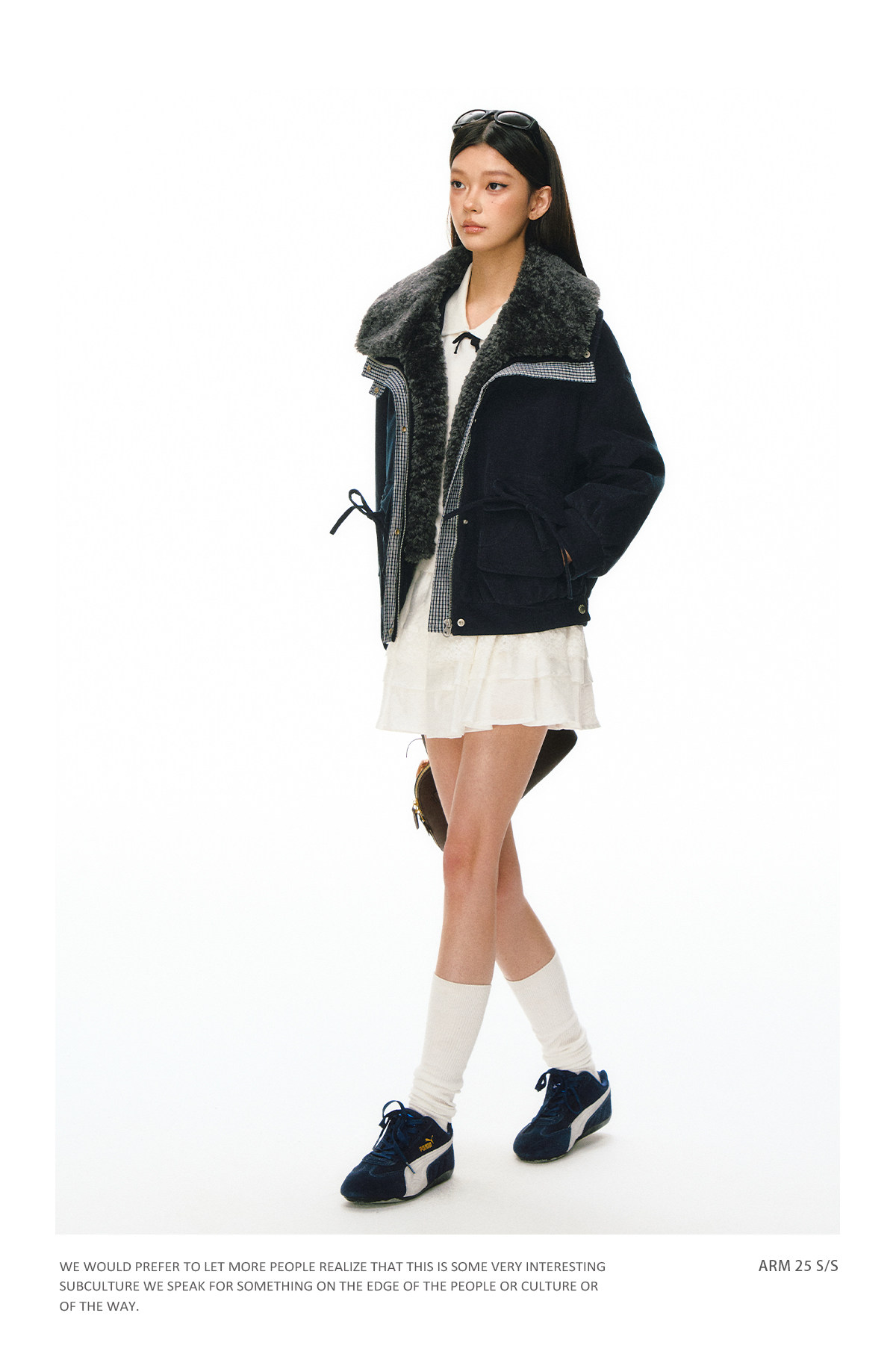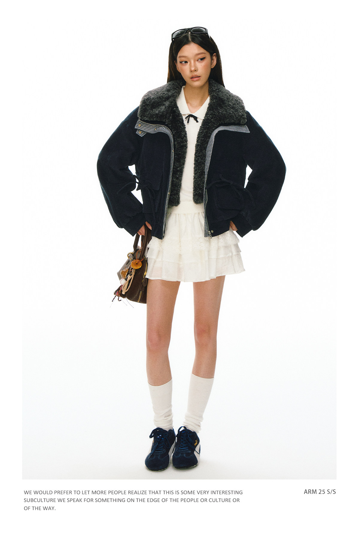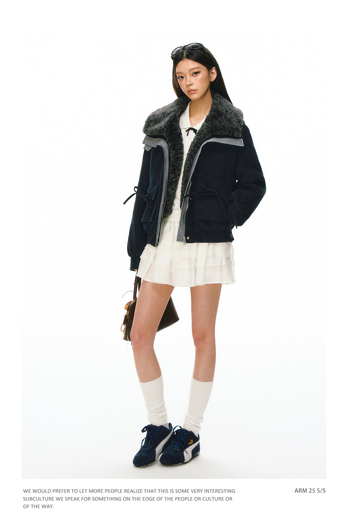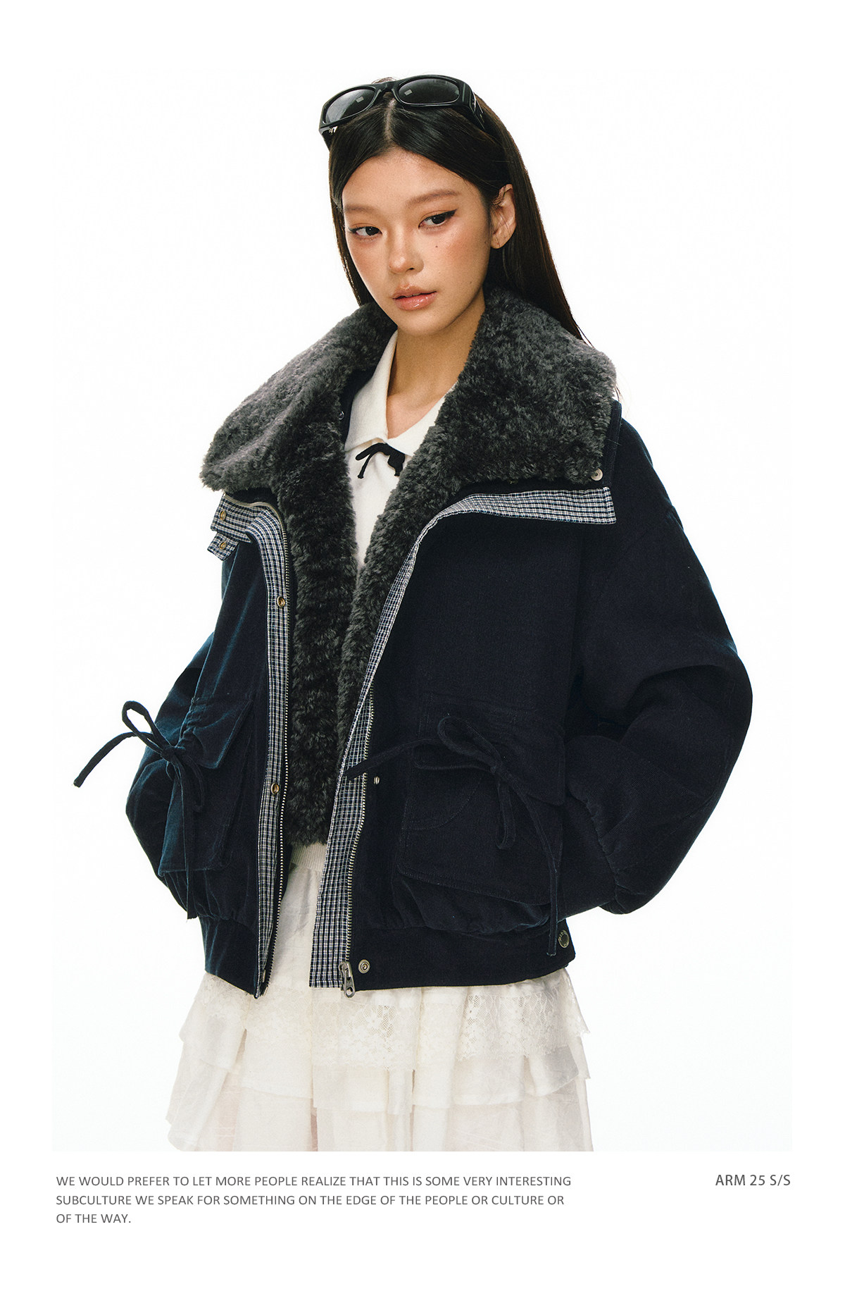 Ariseism 抽绳蝴蝶结可拆卸毛领棉服女冬季新款加厚宽松保暖外套