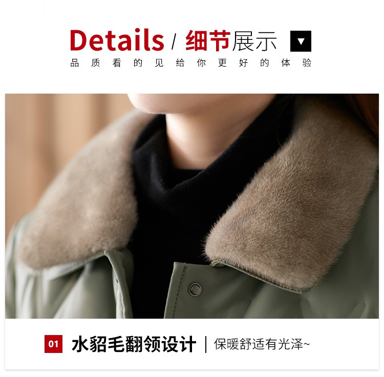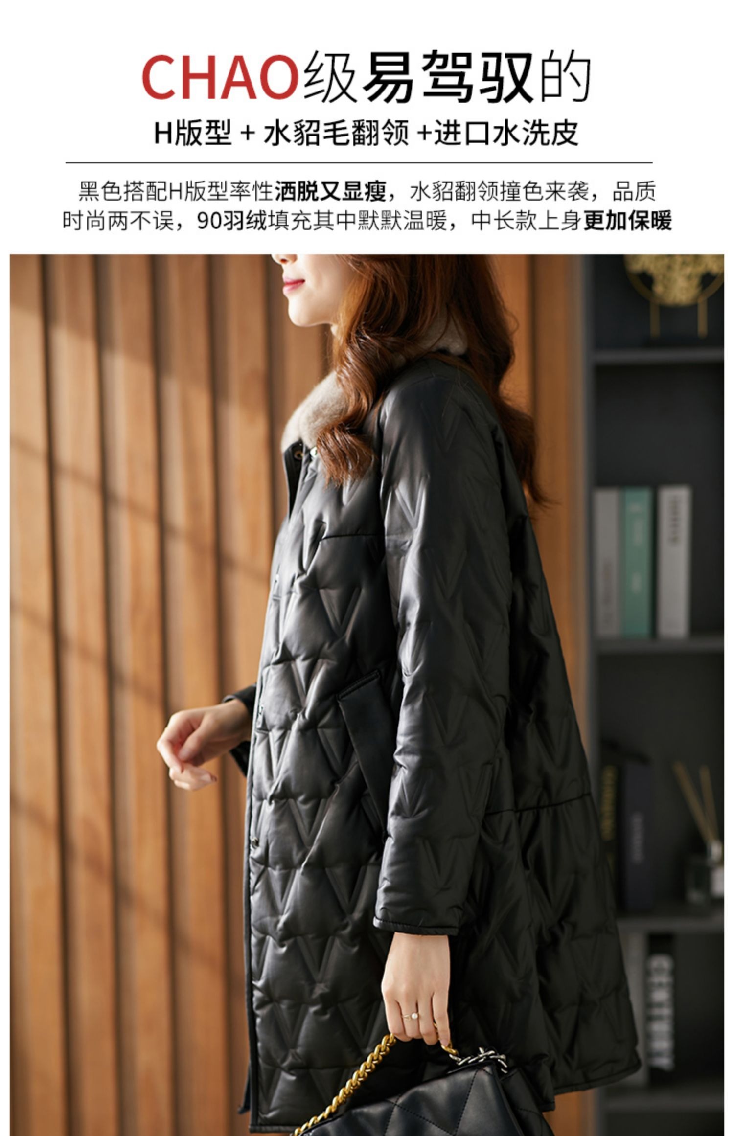 【部分现货】水貂毛保暖皮羽绒服女中长款水洗皮加厚皮衣外套2023新款冬季
