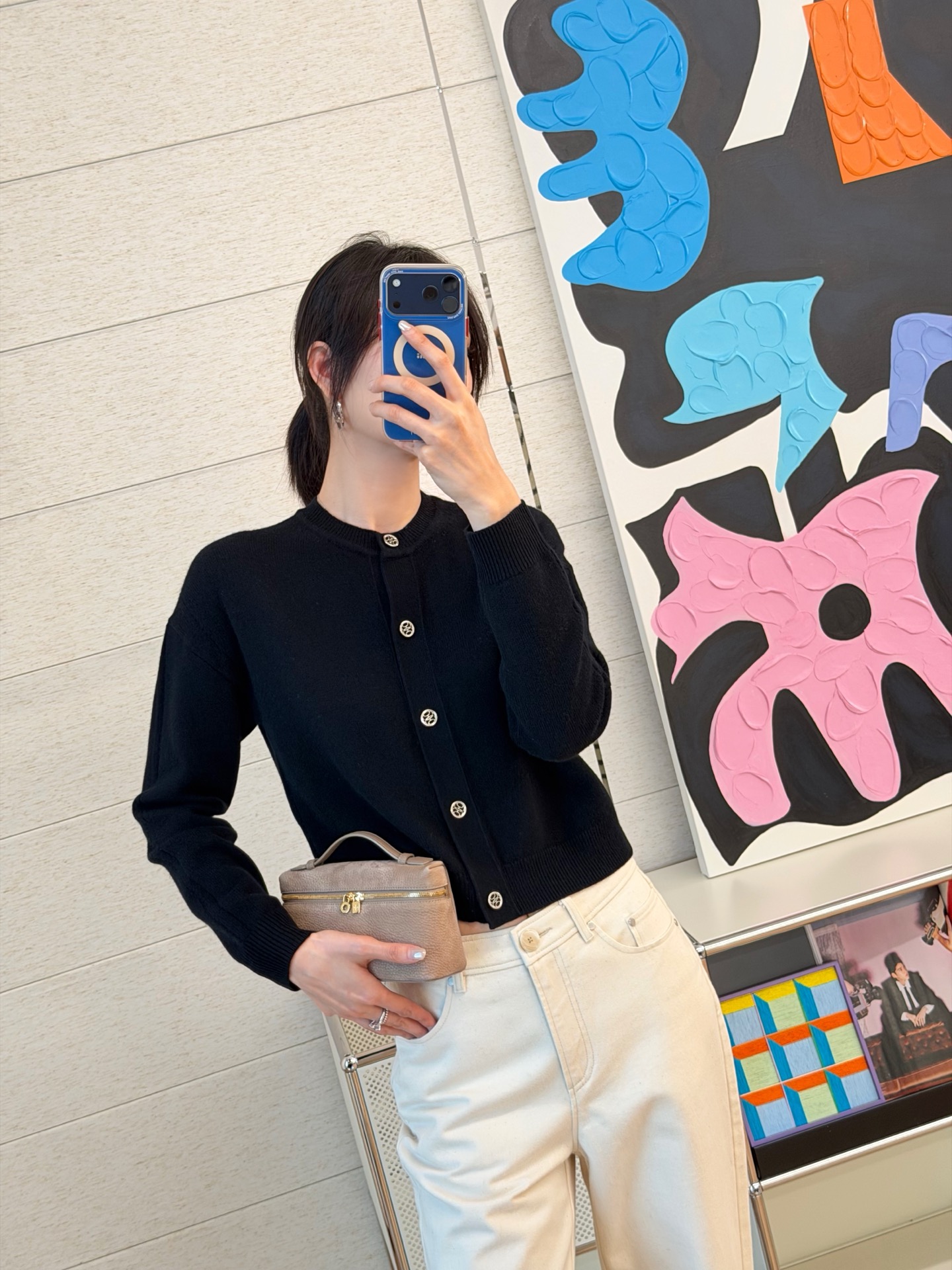 最新款针织衫登场,让人一眼心动, 极简与老钱风的完美结合,质感无可挑剔✨ 定制纽扣与后背缕空织法尽显匠心,细节精致度满分, 上身立显高级气质,版型优雅利落,注定成为你的衣橱挚爱❤️ 不仅温暖舒适,时髦度更是直接拉满,别犹豫,赶紧入手吧,黑/白两个色,SML