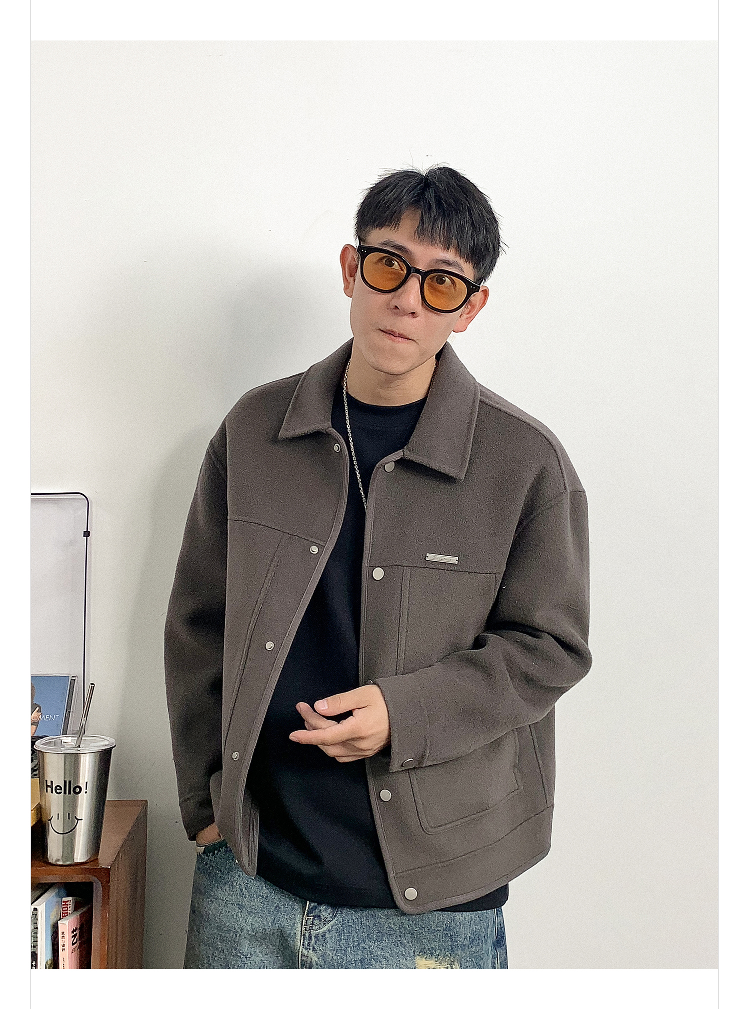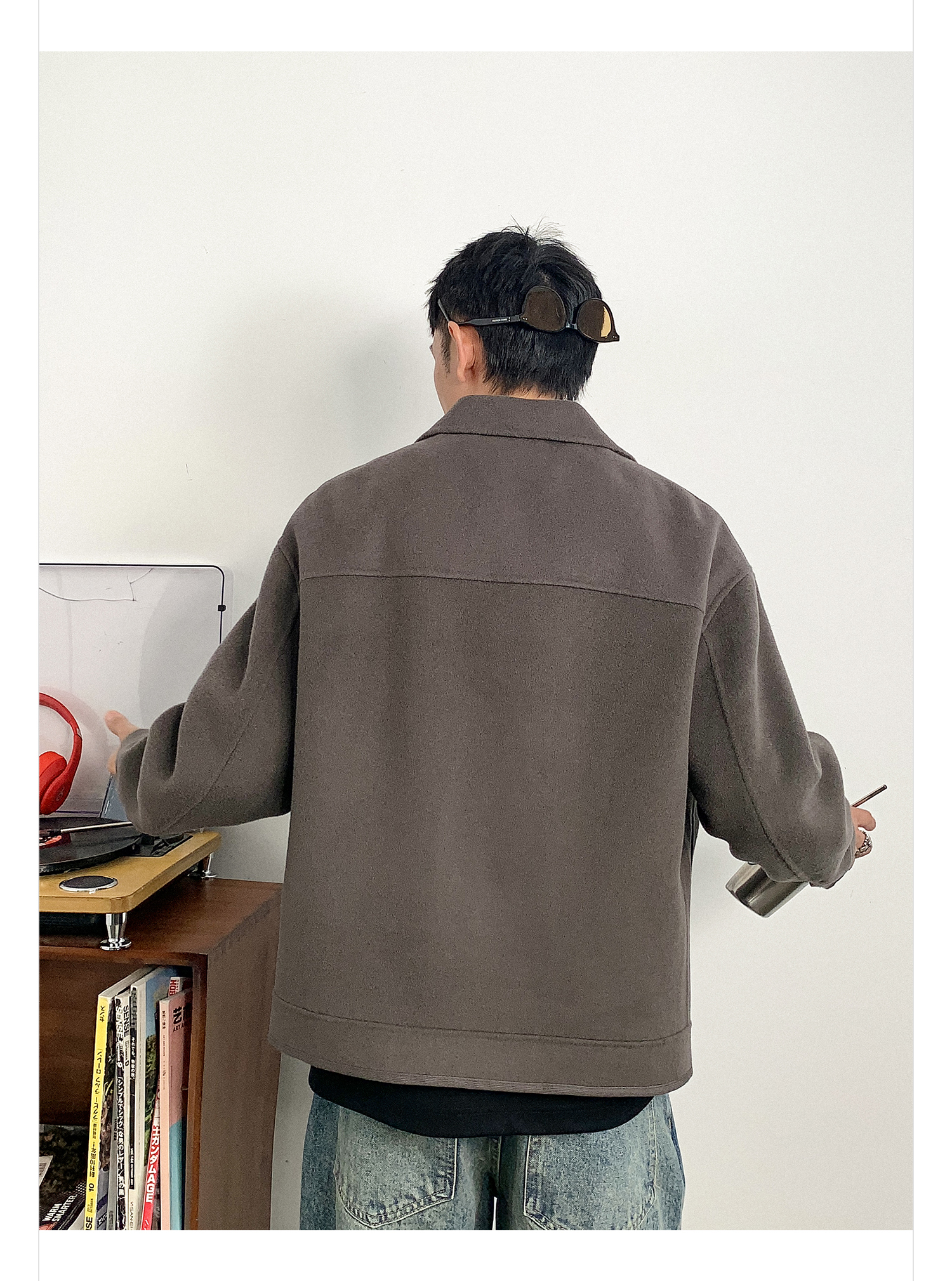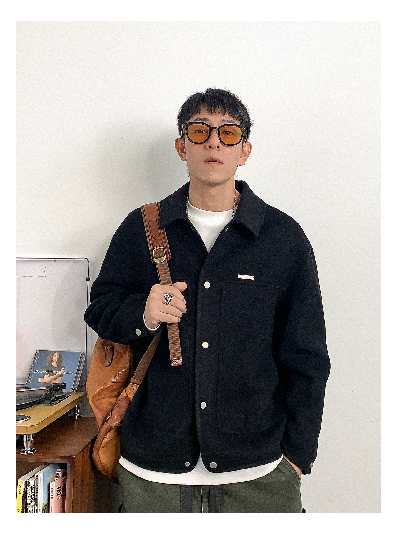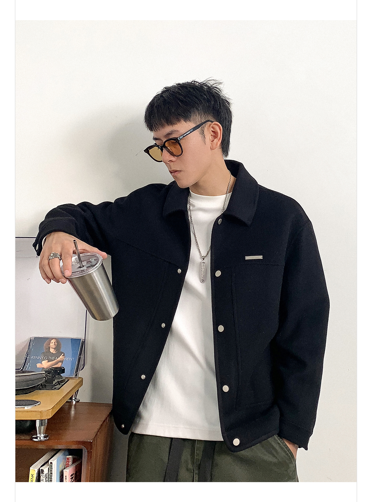 徐太浪简约潮流翻领夹克外套男士秋冬新款加厚百搭休闲毛呢子上衣