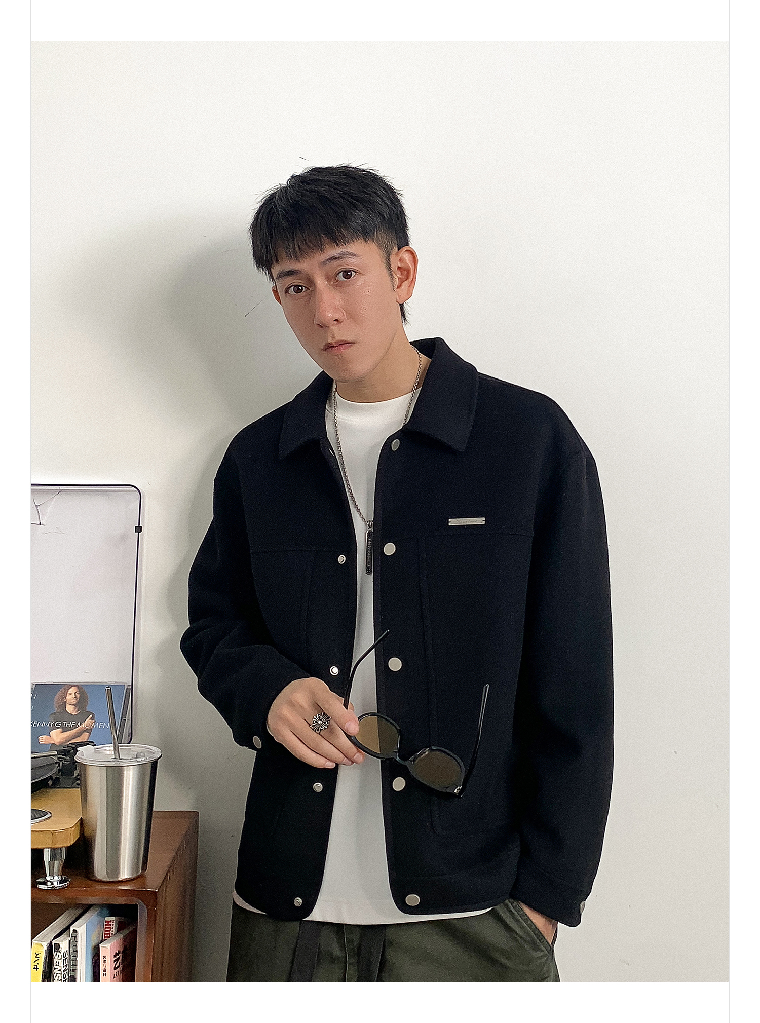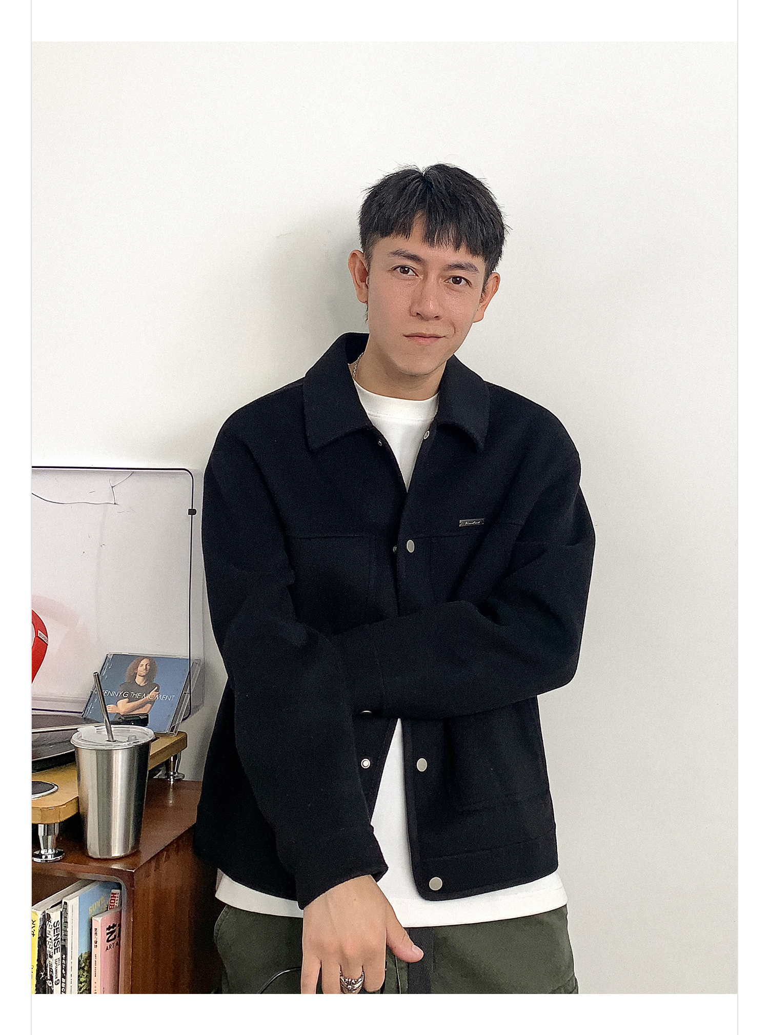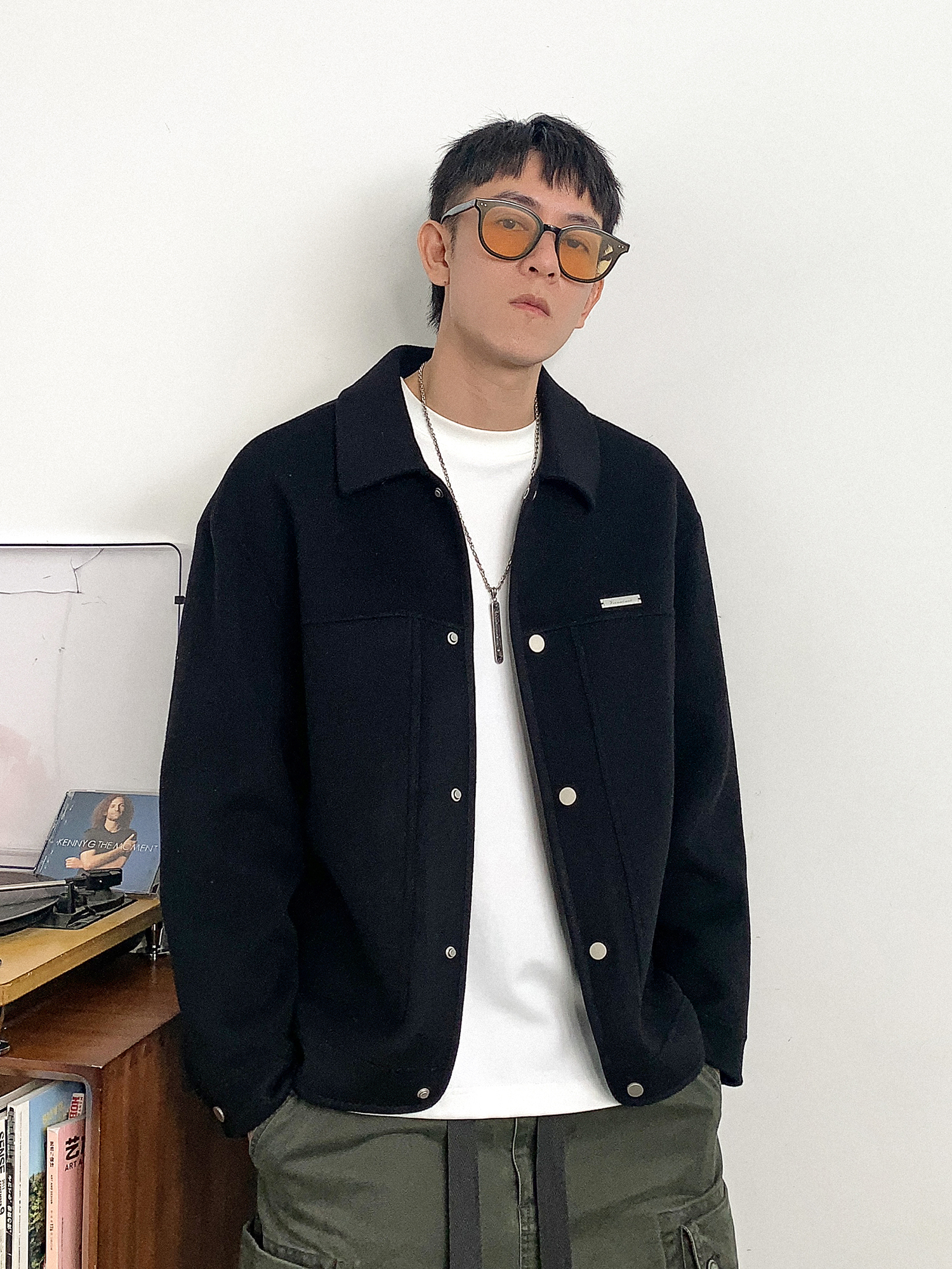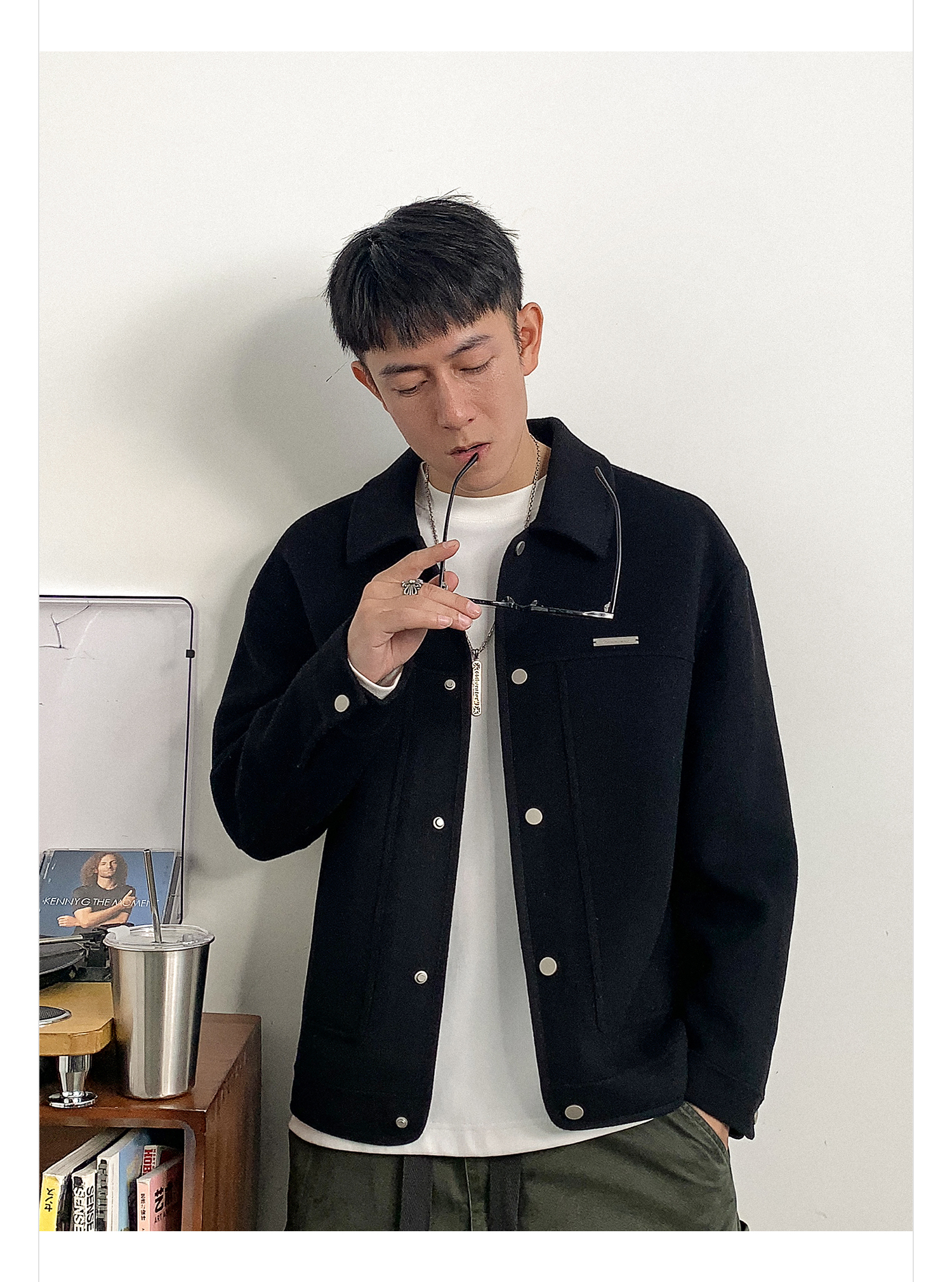 徐太浪简约潮流翻领夹克外套男士秋冬新款加厚百搭休闲毛呢子上衣