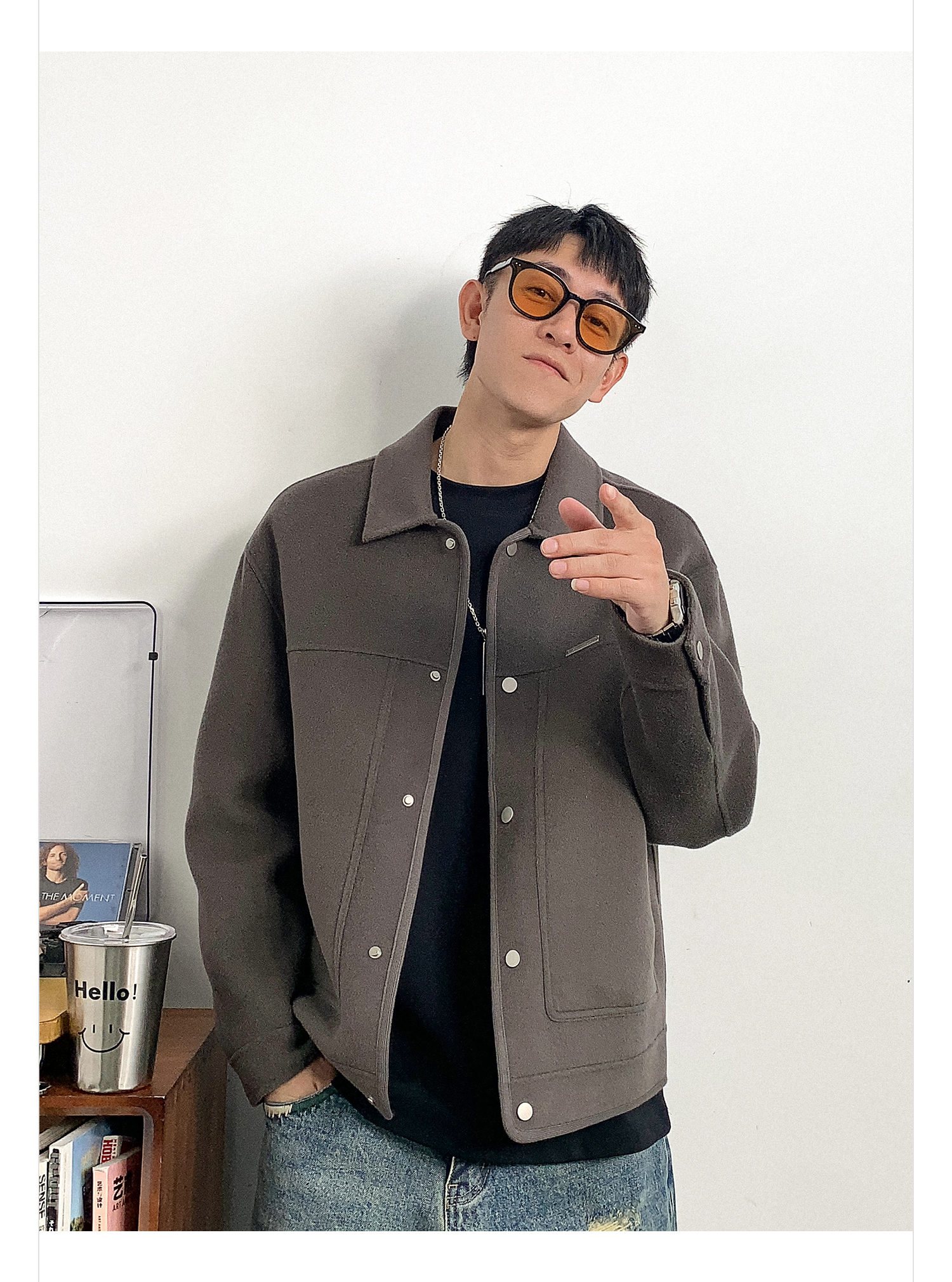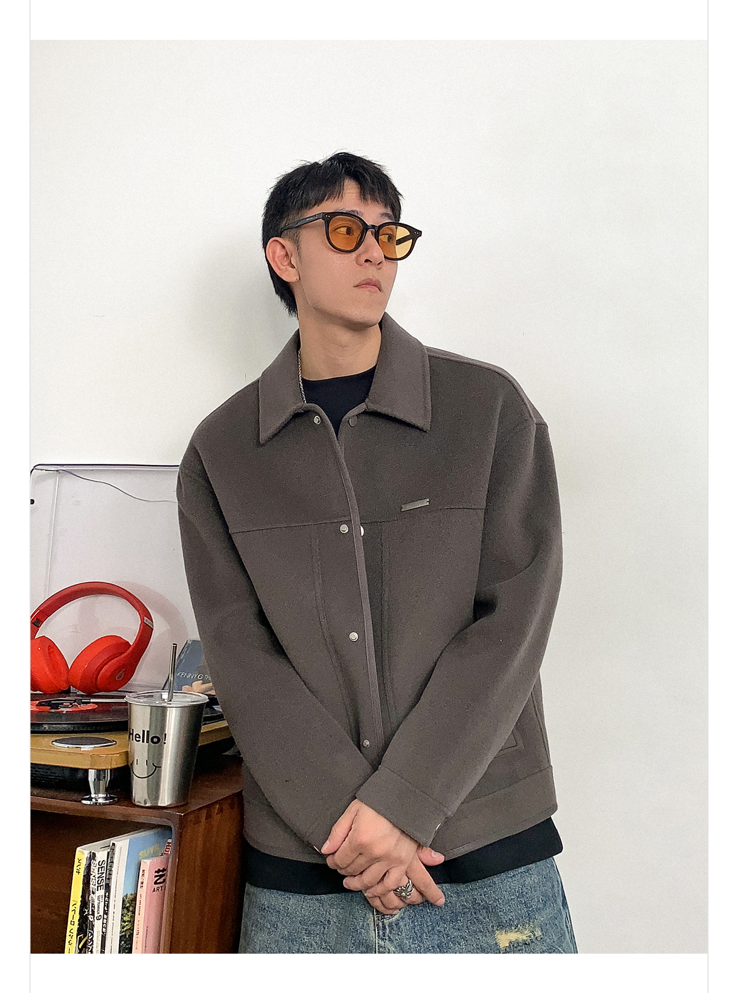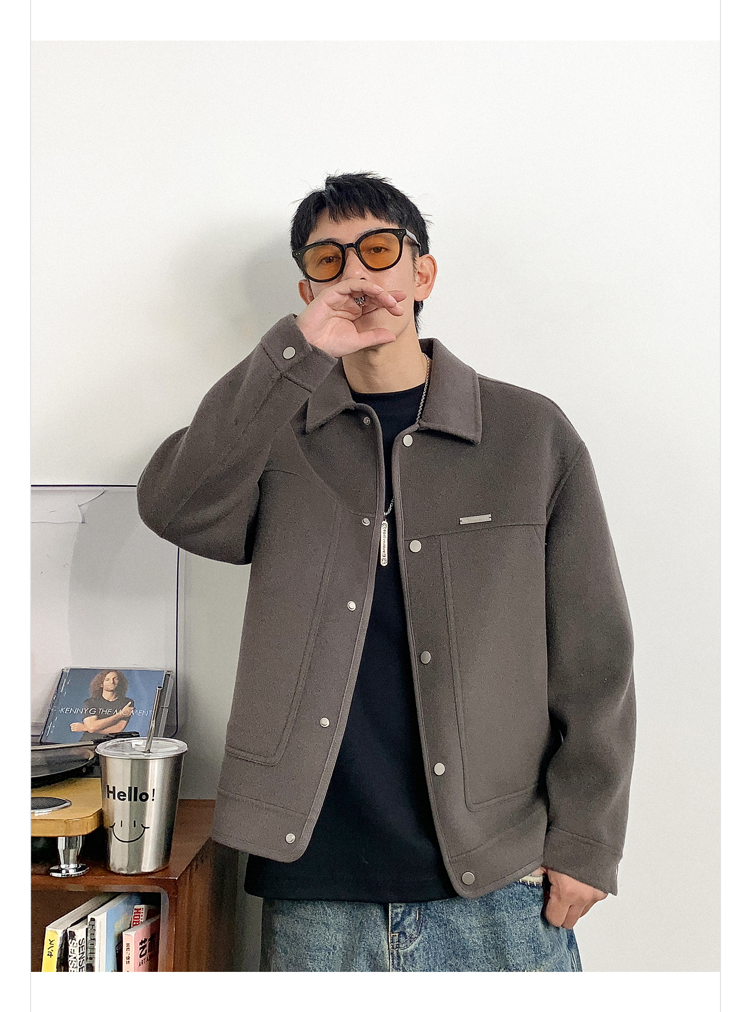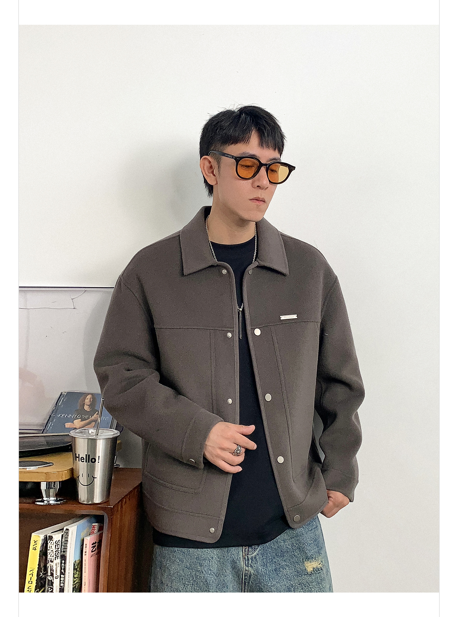 徐太浪简约潮流翻领夹克外套男士秋冬新款加厚百搭休闲毛呢子上衣
