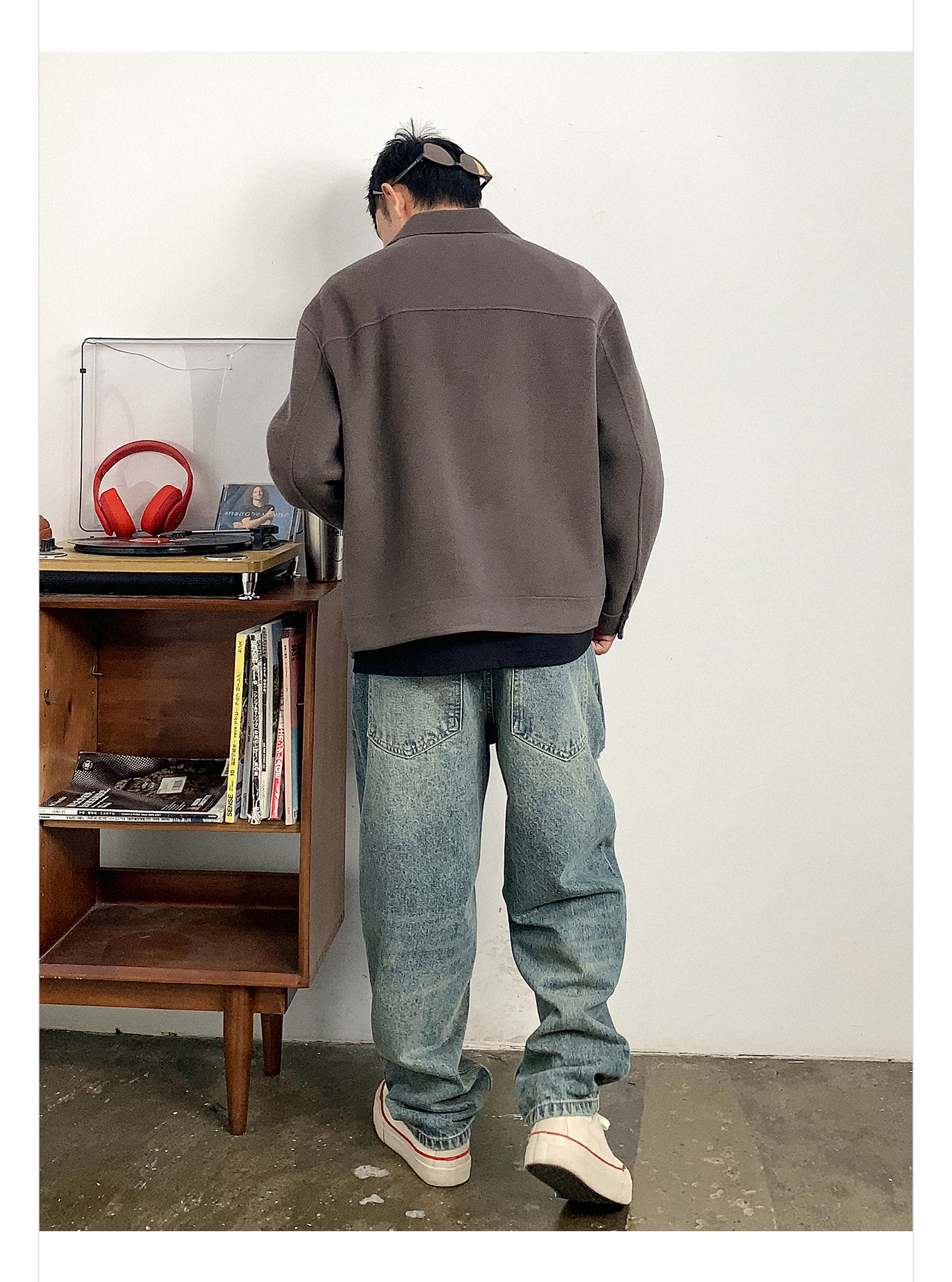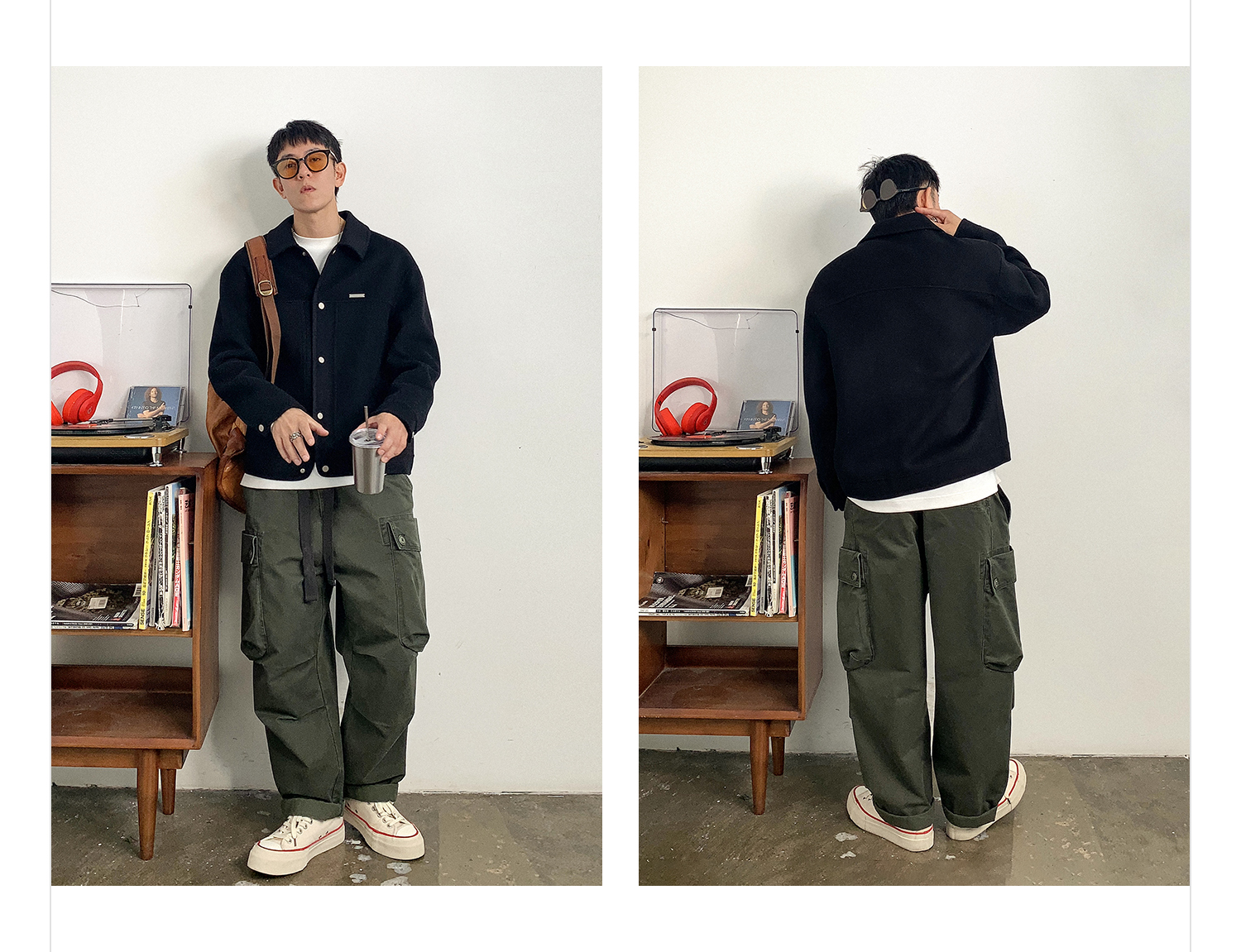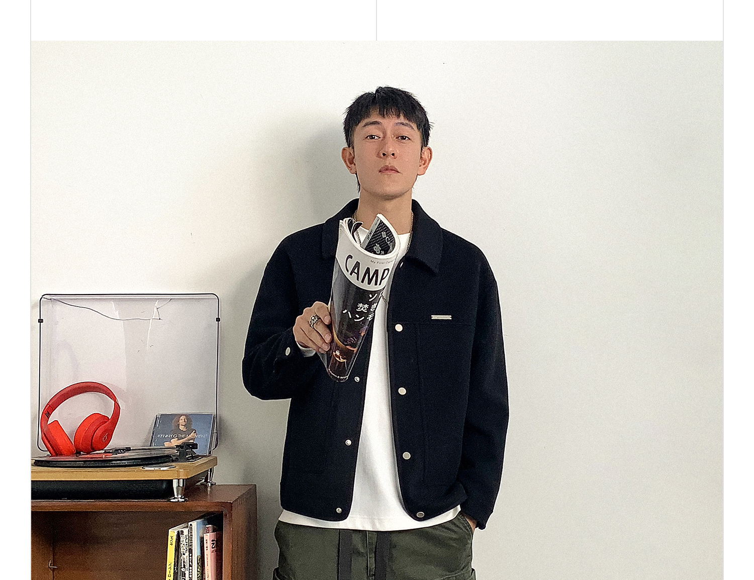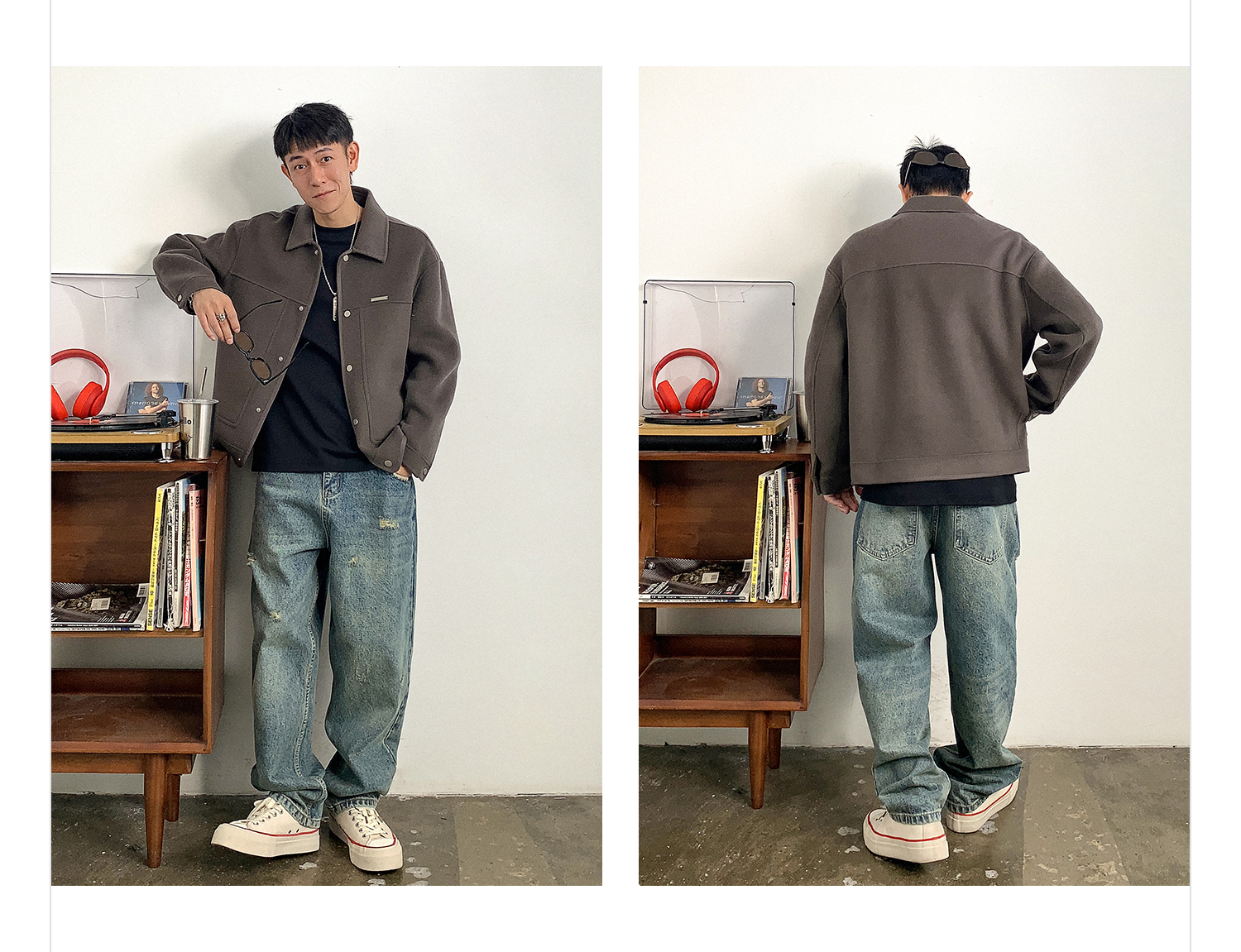 徐太浪简约潮流翻领夹克外套男士秋冬新款加厚百搭休闲毛呢子上衣