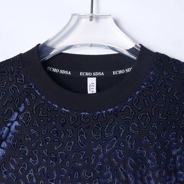 T2588夏季高级感新款韩版撞色提花圆领长袖T恤小众设计满印休闲上衣