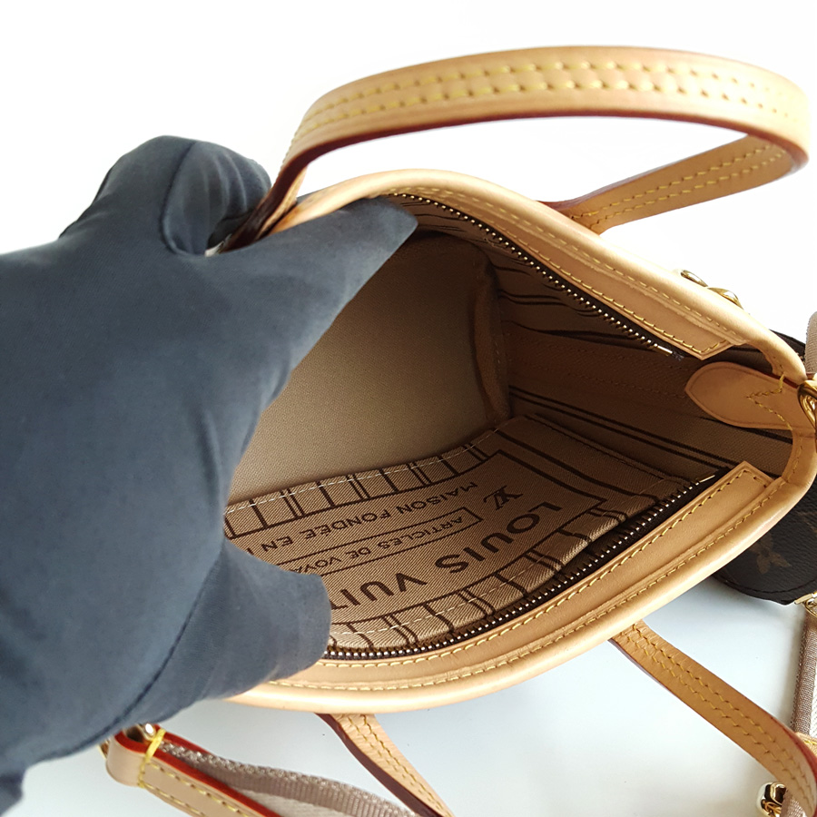 【95新】LV路易威登Neverfull系列M46705老花奶茶色宽肩带Neverfull BB购物袋手提单肩包061125NJS32