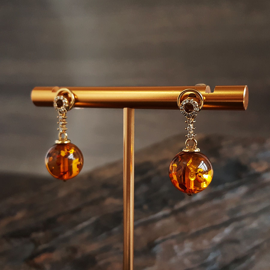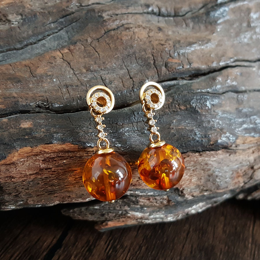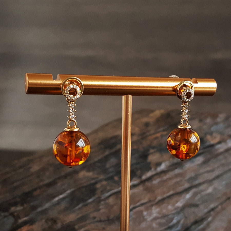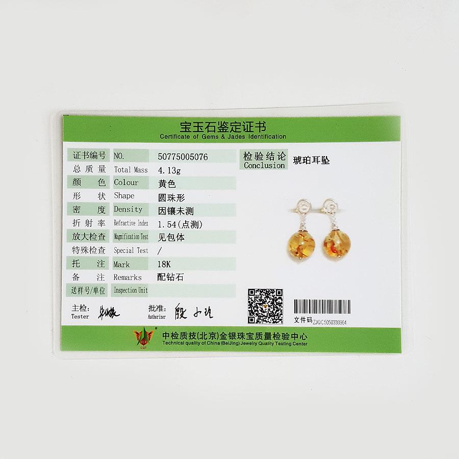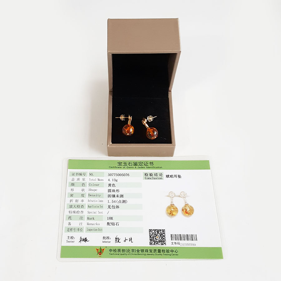 名称 | AU750黄金镶钻镶天然约10.5MM花珀琥珀耳坠 |