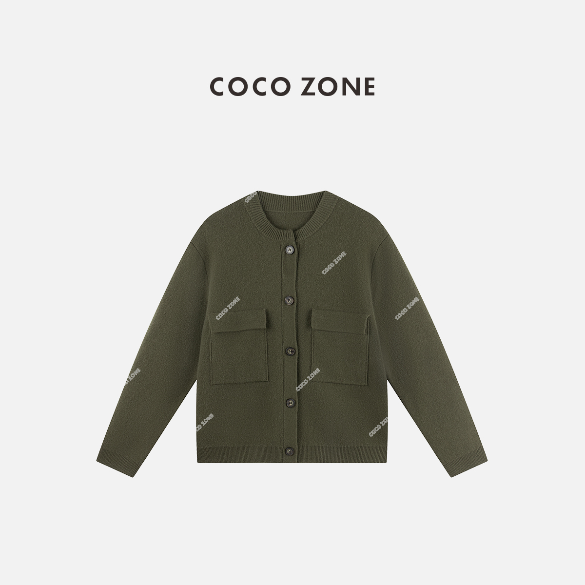 COCO ZONE 设计感纯色女士针织开衫简约圆领上衣CC1C2008