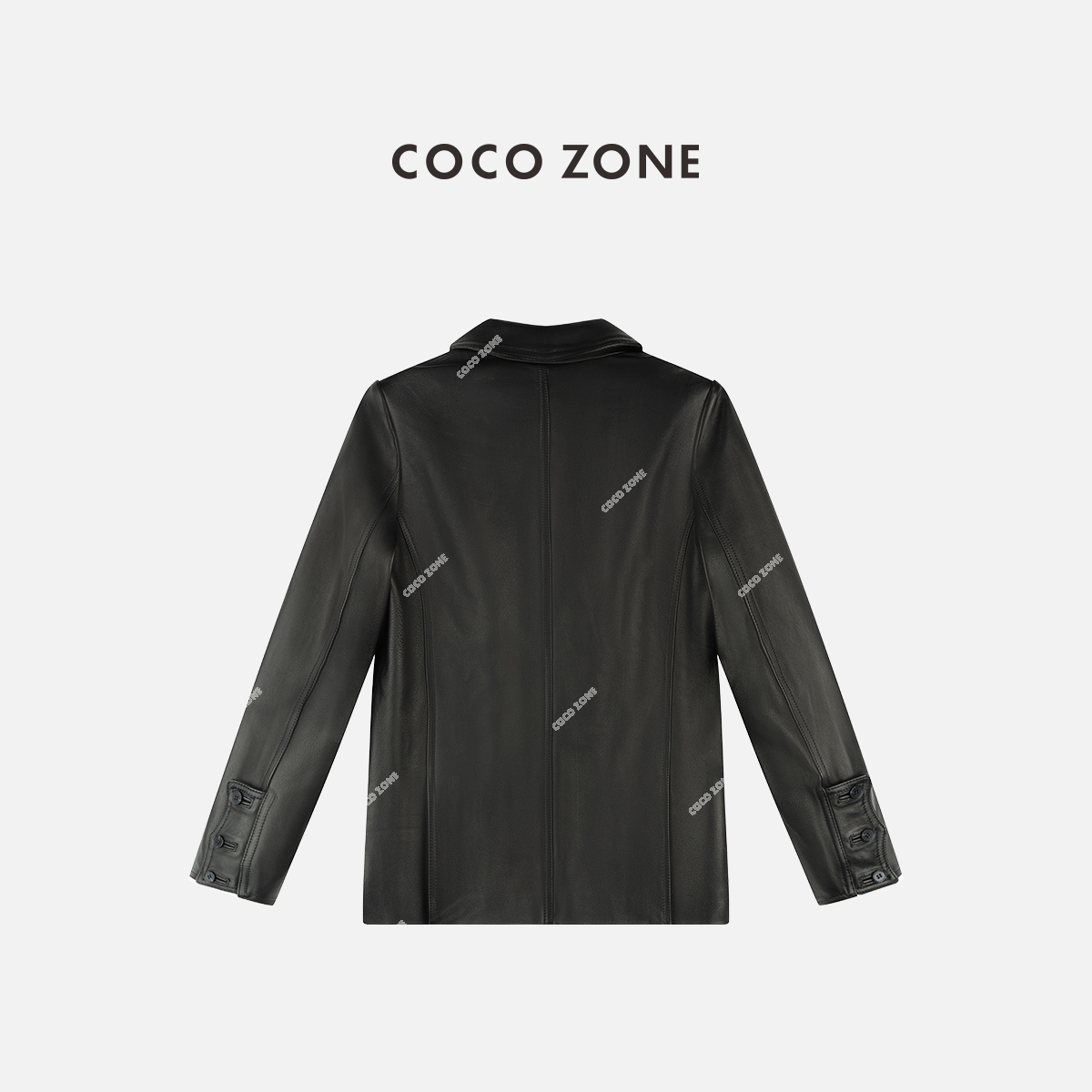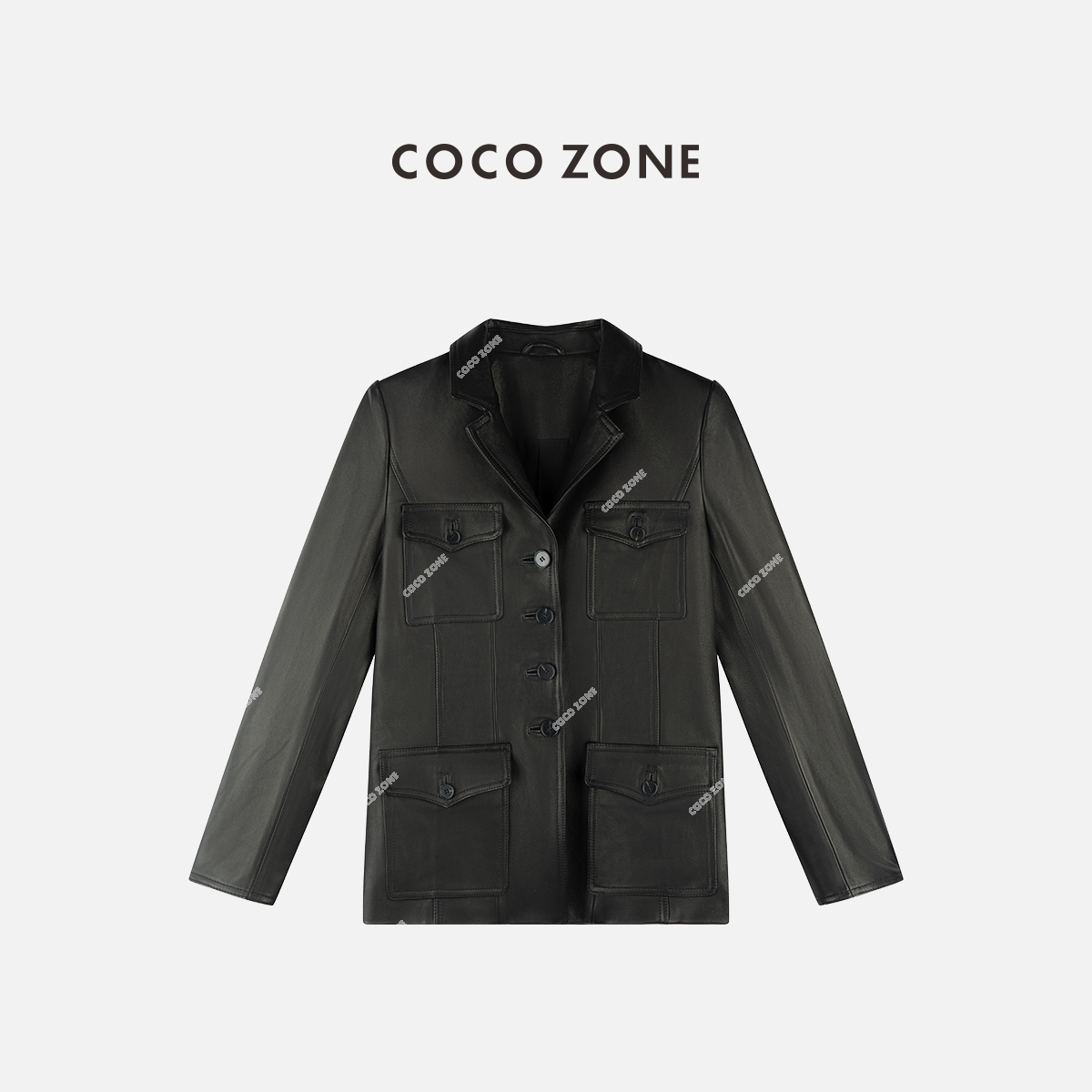 COCO ZONE 设计感多口袋皮衣外套气质翻领女上衣CC1C2016
