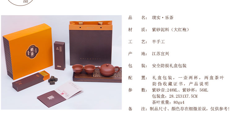 璞实茶器璞实乐茶一壶两杯原矿紫砂大红袍原矿茶叶湘益黑茶礼盒礼品套装
