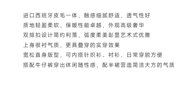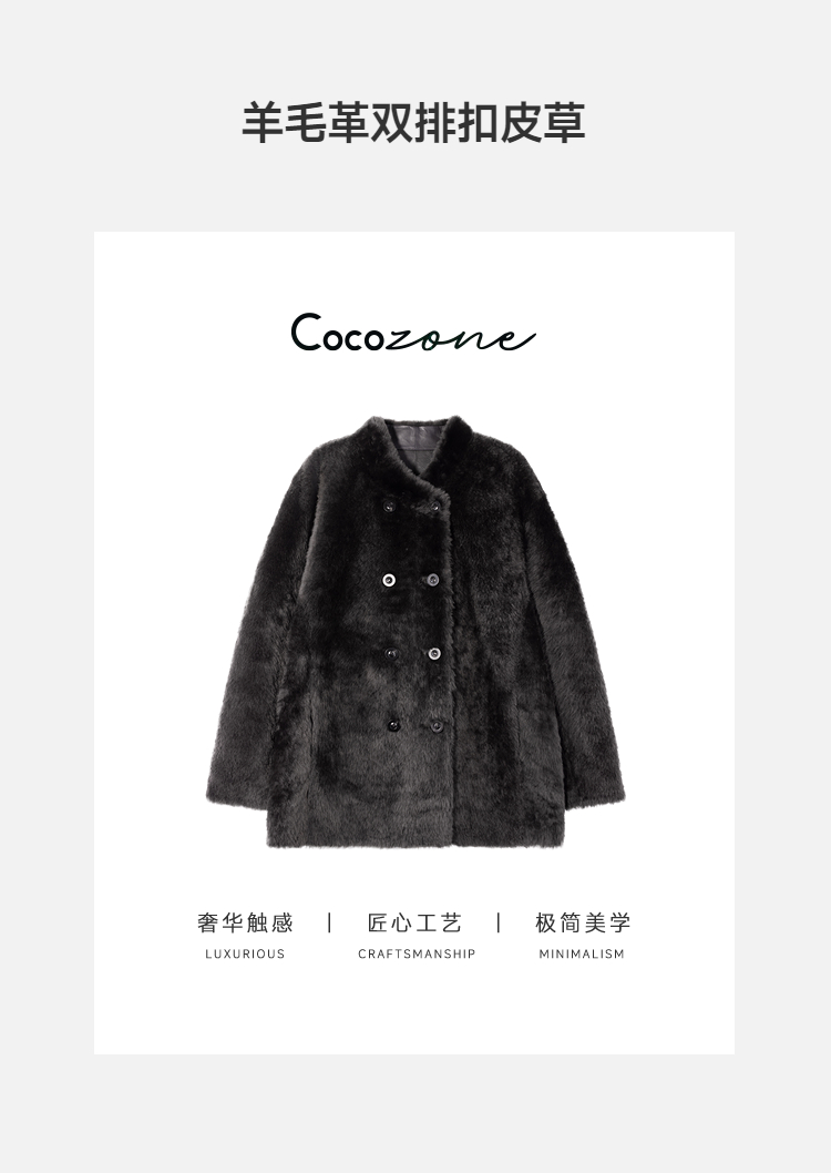 COCO ZONE 刘一一 "维纳斯"100羊毛革双排扣皮草 CD2A2567