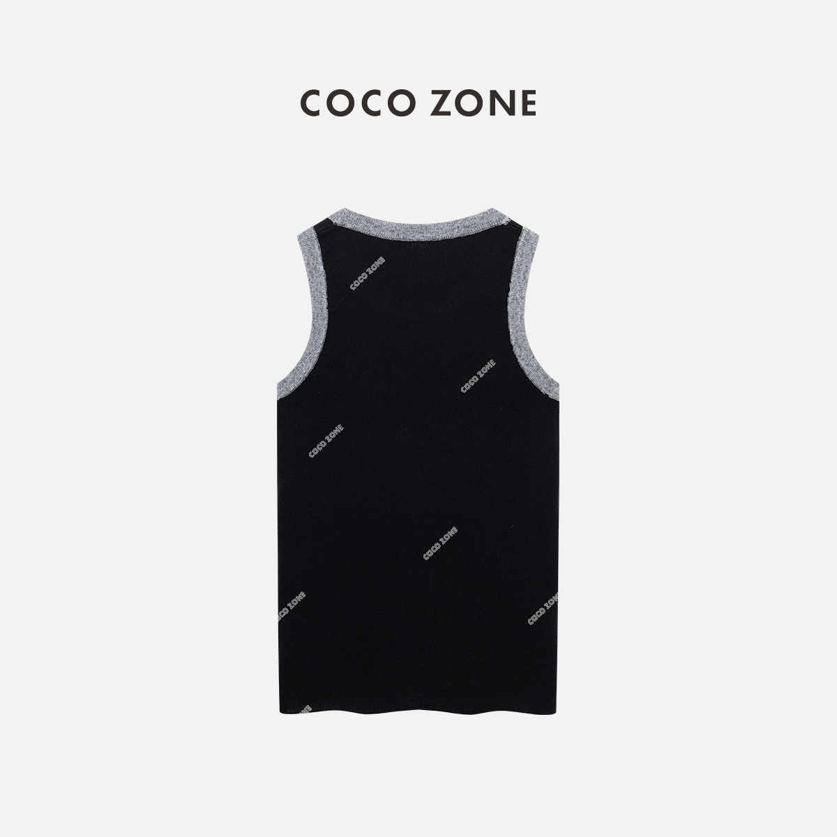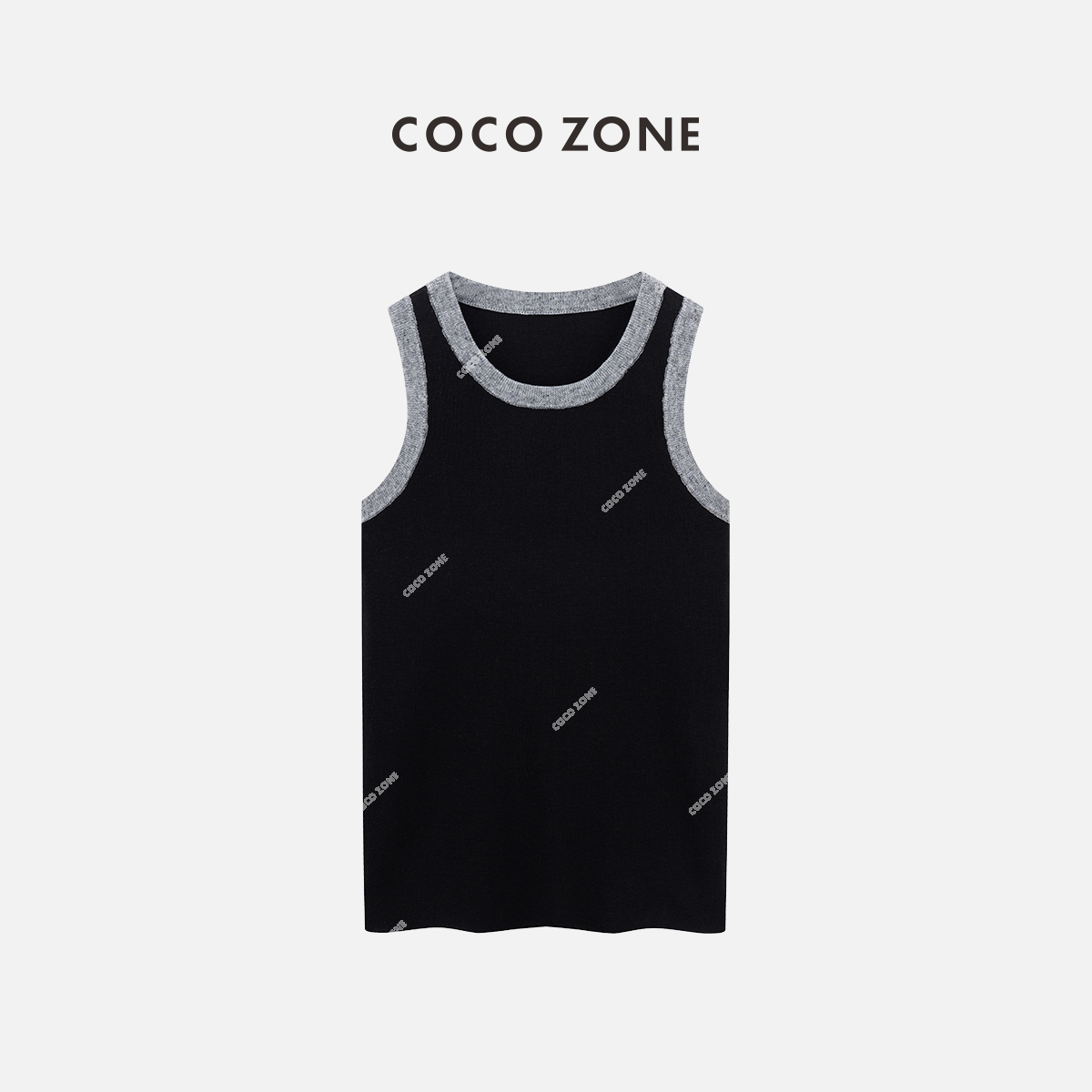 COCO ZONE 2024撞色圆领针织吊带背心百搭坑条无袖毛衣CC2A0260