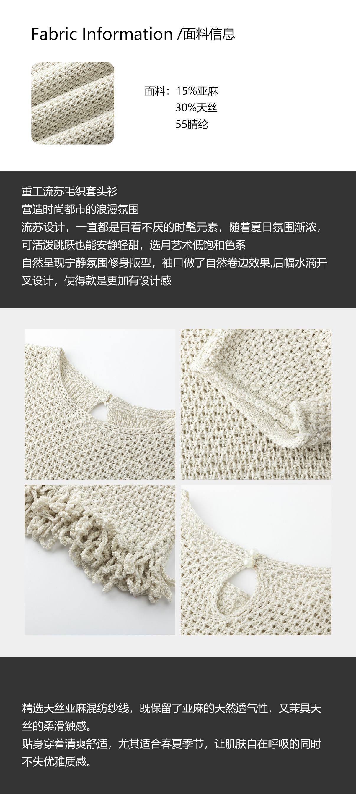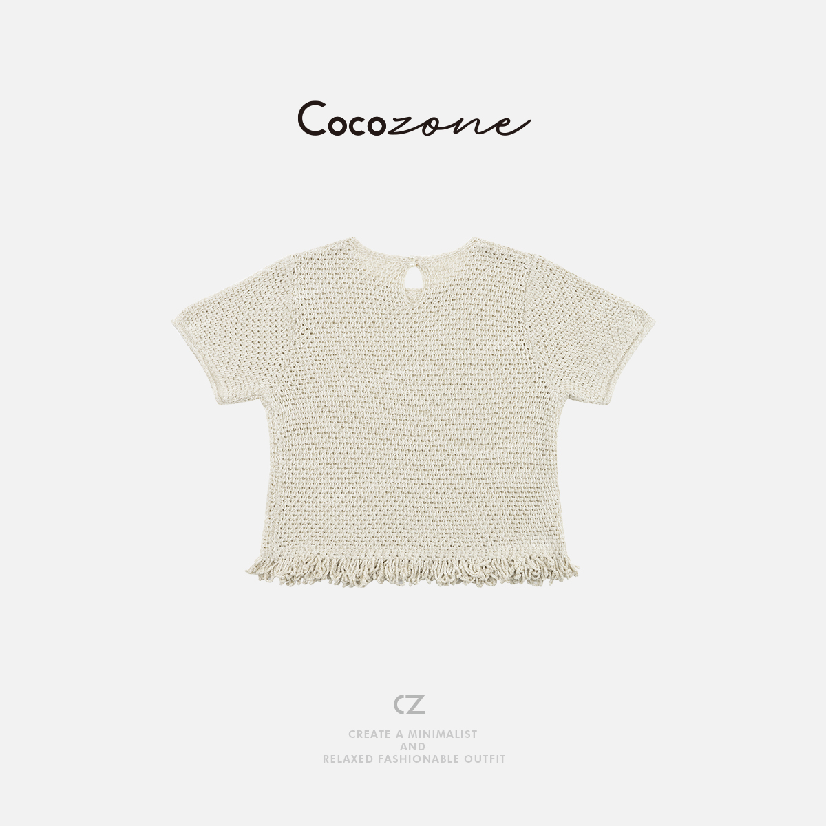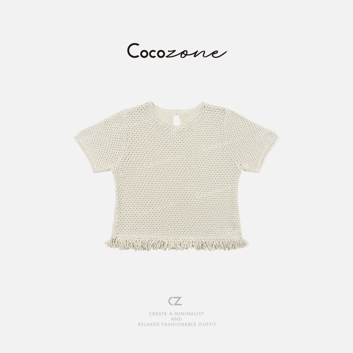 COCO ZONE 刘一一 【天丝亚麻混纺】镂空圆领毛织上衣CD1A0847