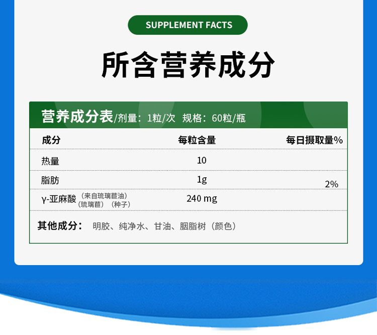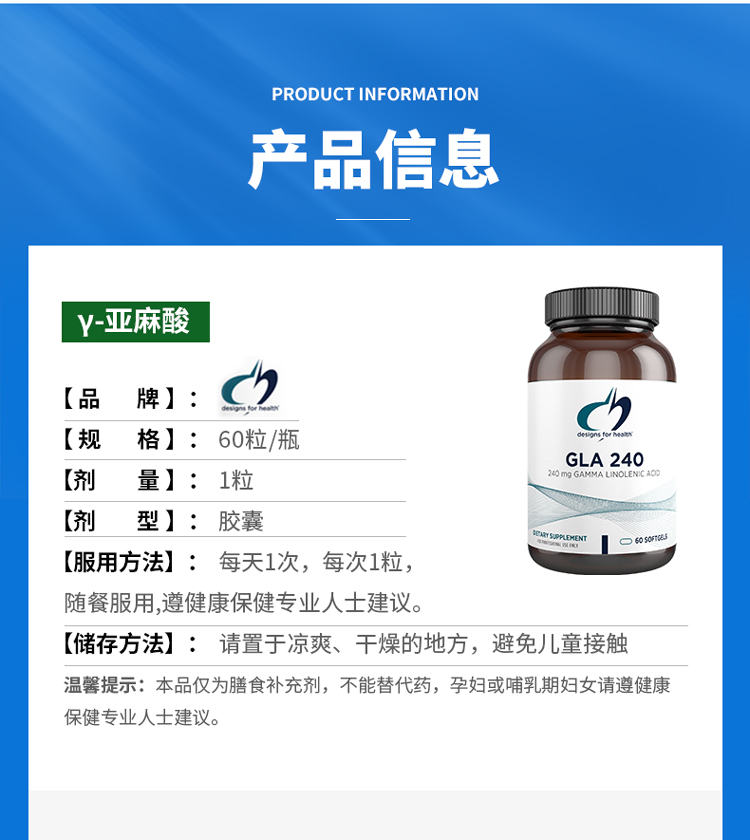 【效期至27年6月】亚麻酸胶囊 Designs for health GLA 240 mg softgels 60粒/瓶