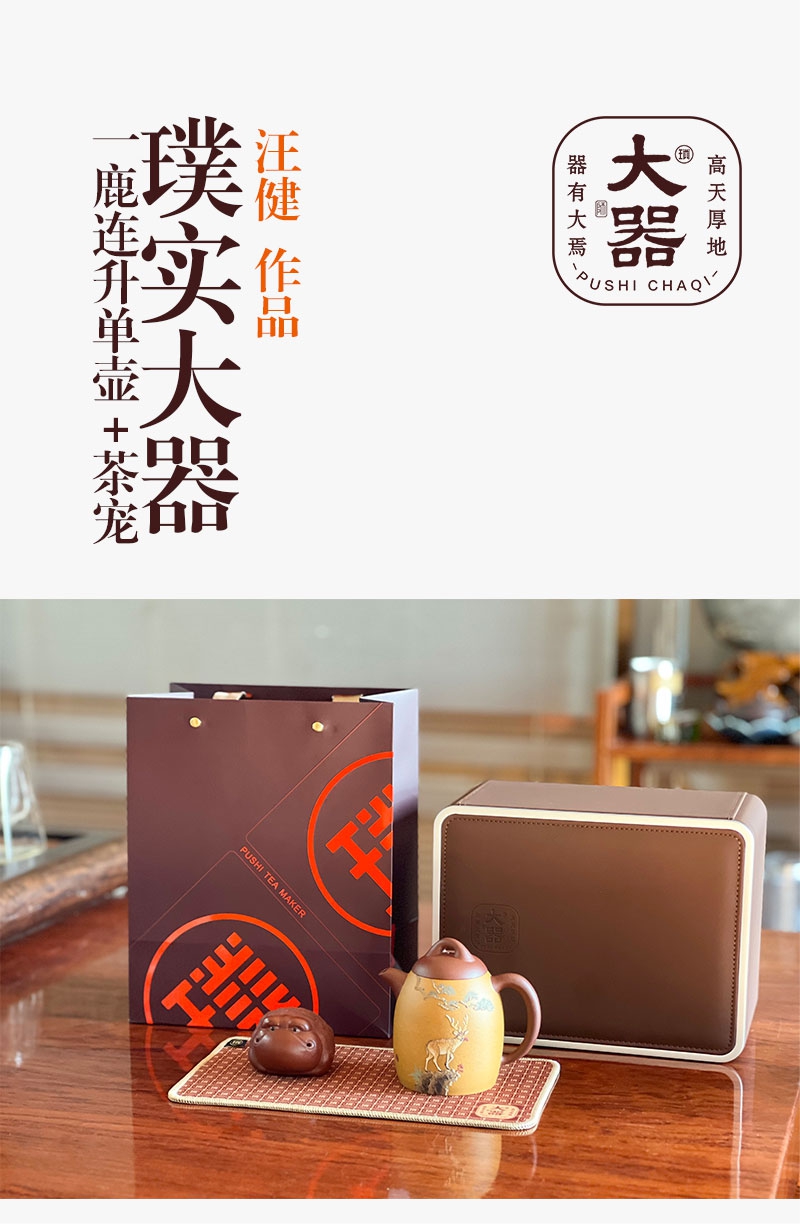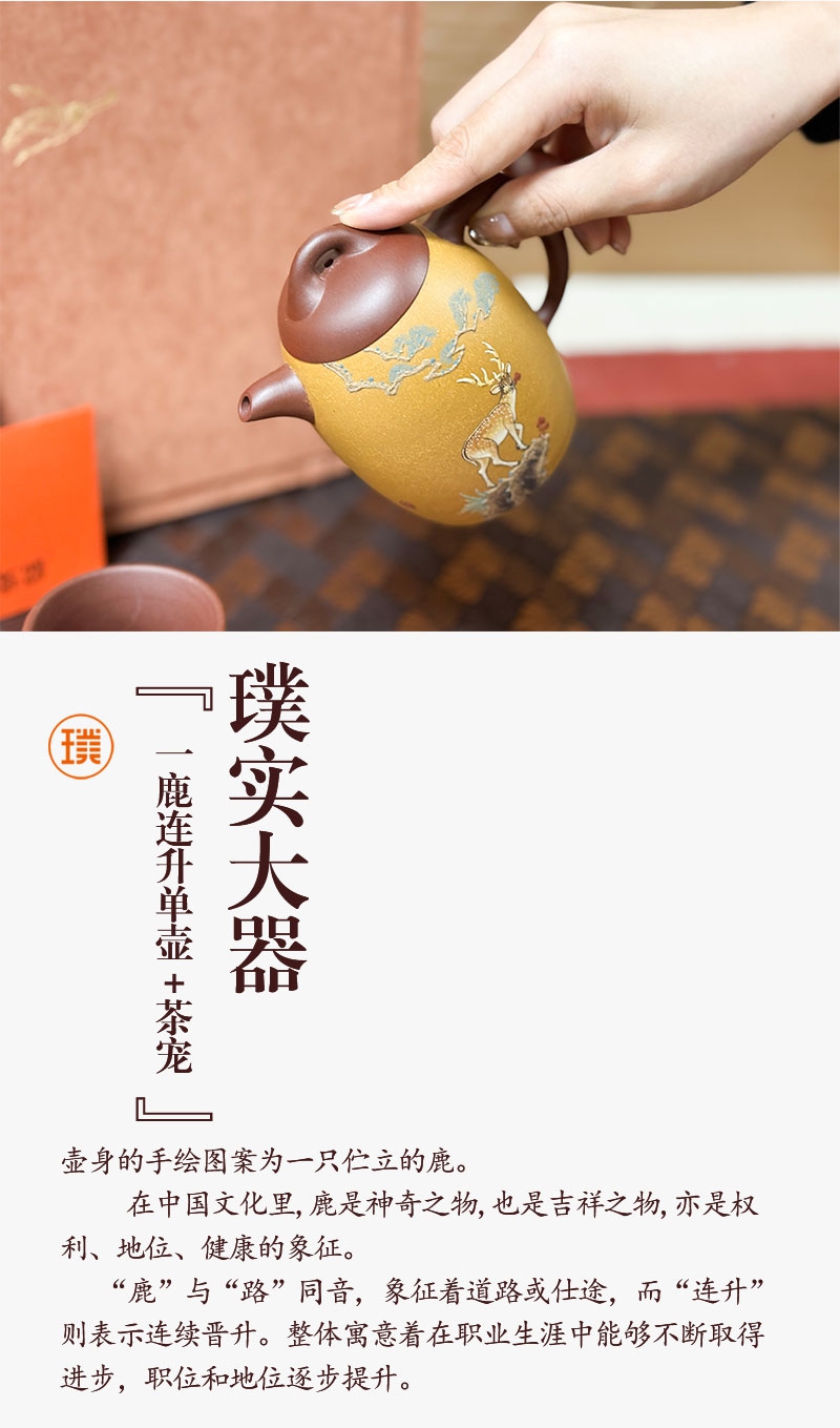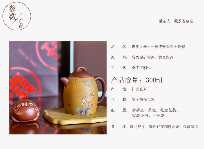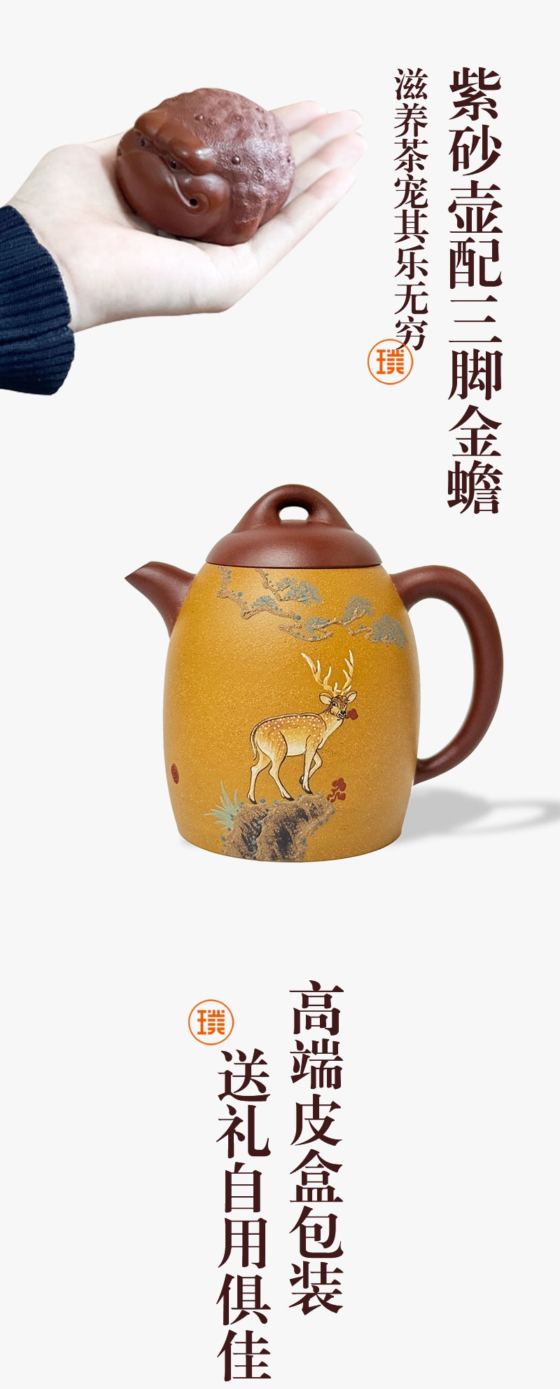 璞实大器一鹿连升单壶加茶宠马晓君大师作品全手工制作原矿紫砂壶