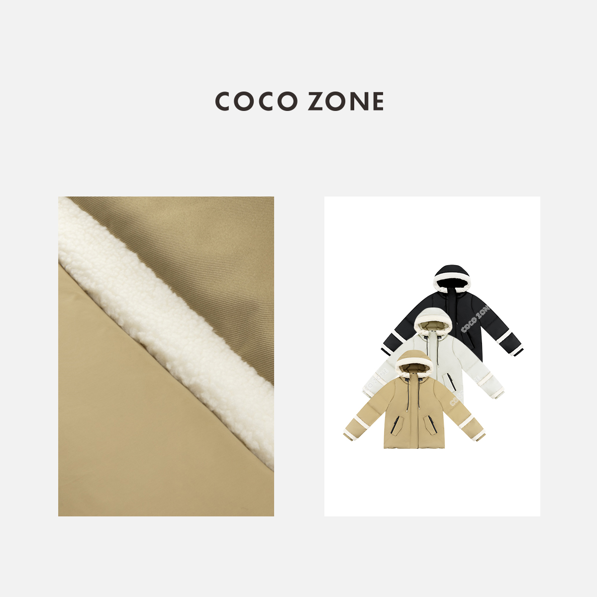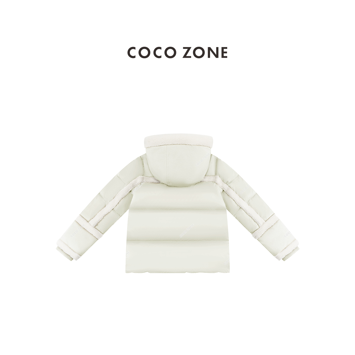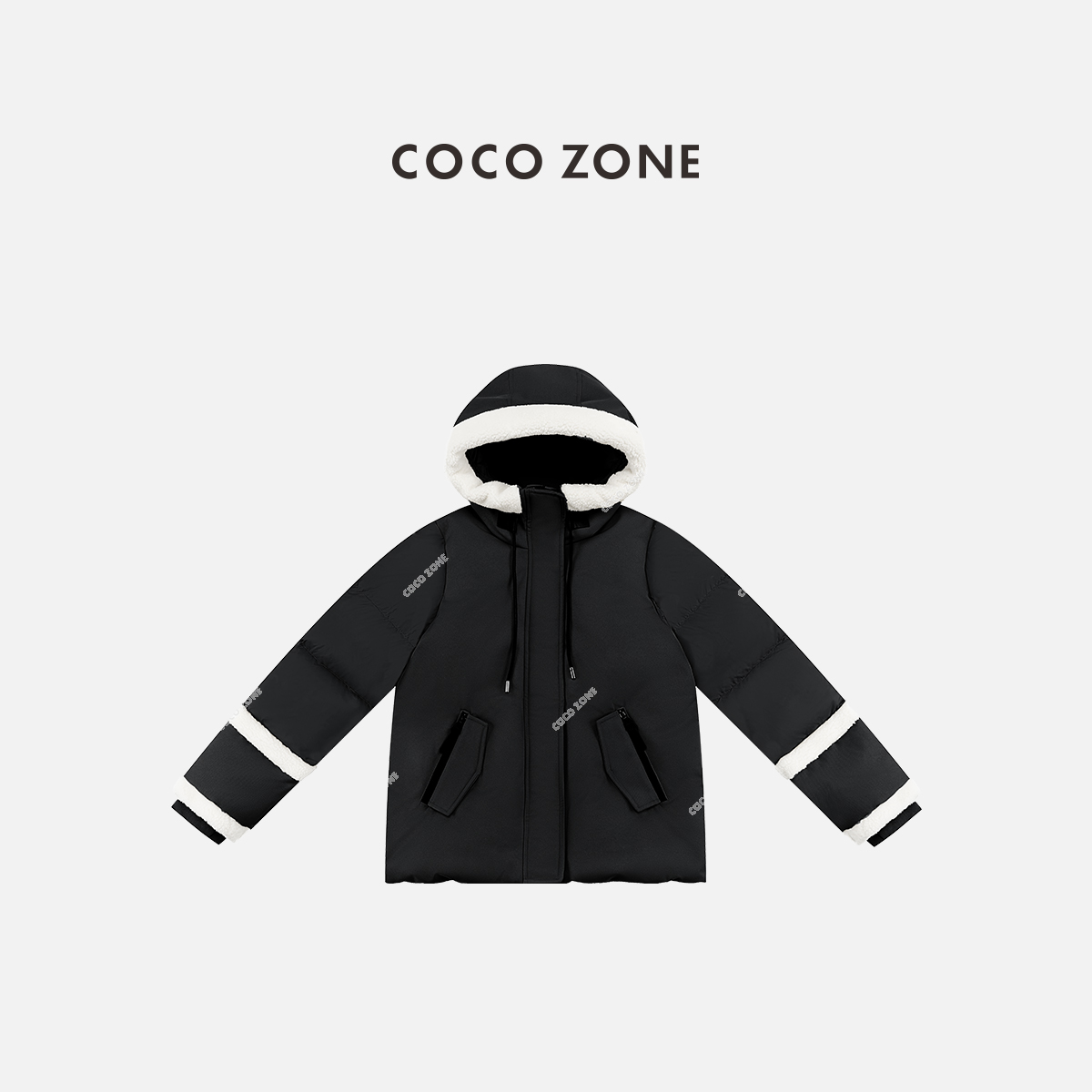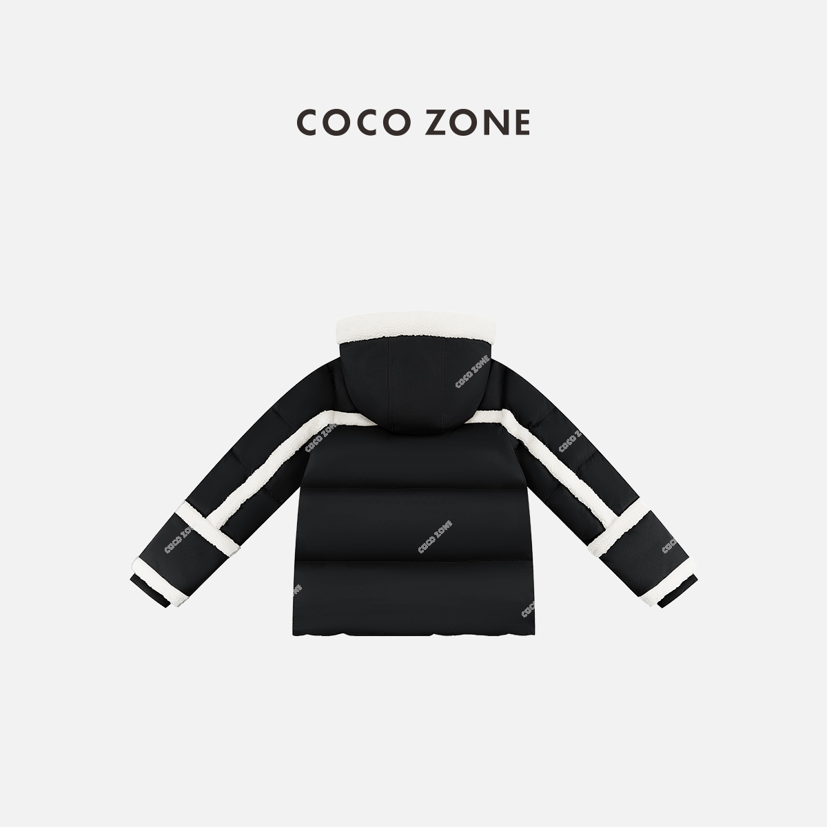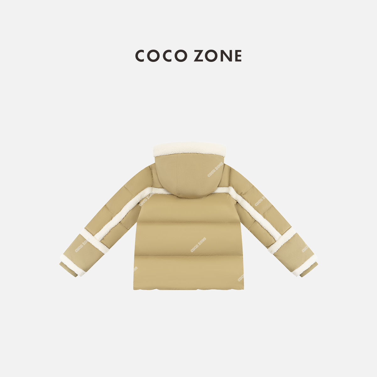 COCO ZONE 秋冬90鸭绒拼接连帽拉链羽绒服CC2D2884