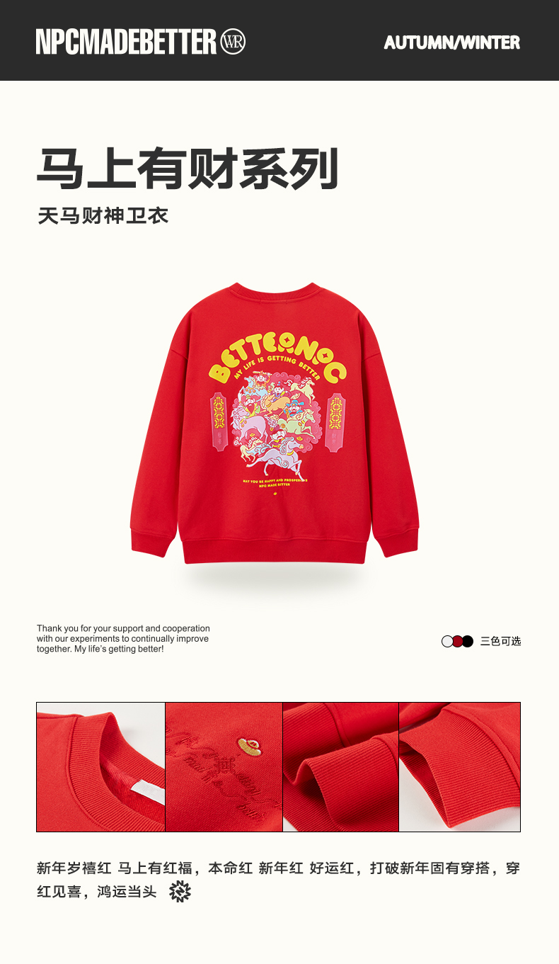 NPC潮牌五路财神3.0圆领卫衣飞马财神印花舒温暖皮秋冬NP5CST11