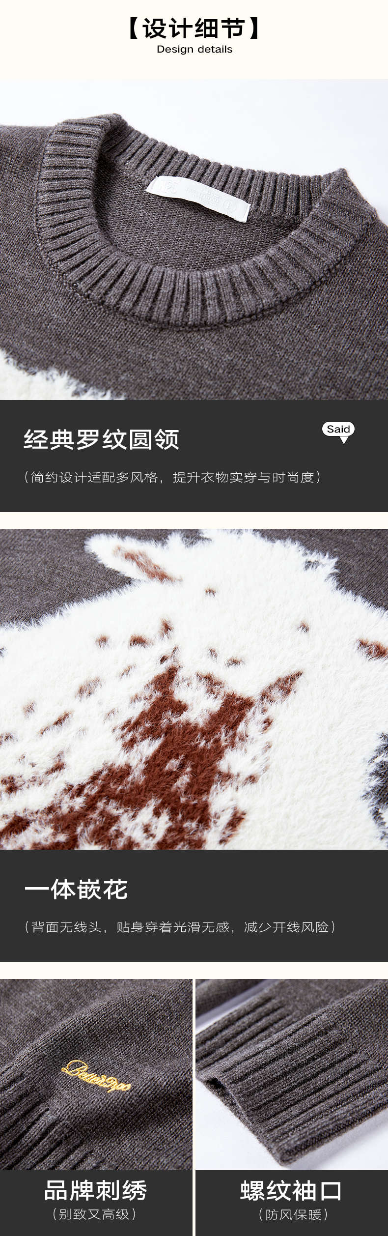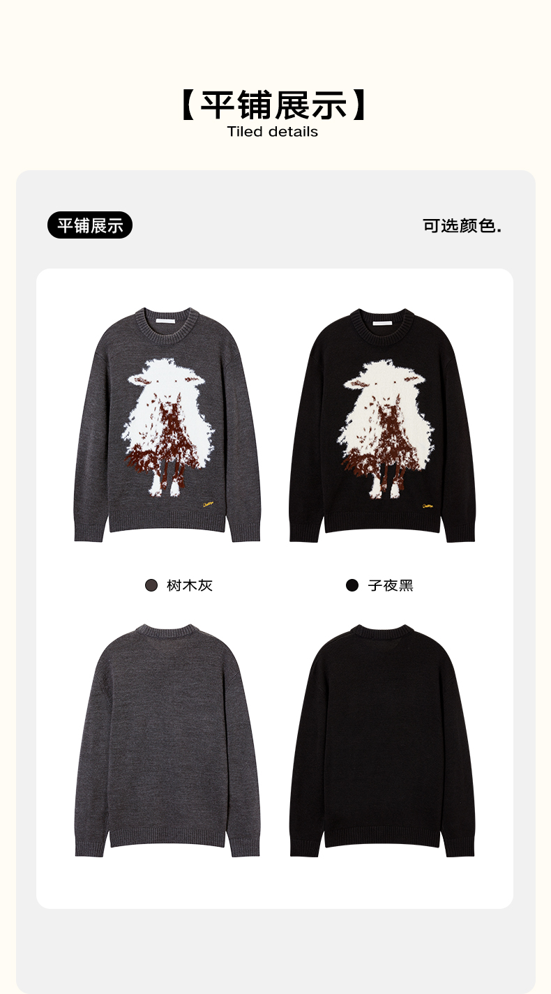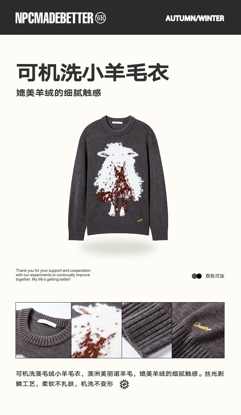 NPC潮牌【至臻羊毛胶囊】丝光澳毛绒嵌花圆领套头毛衣男NP5ASW04