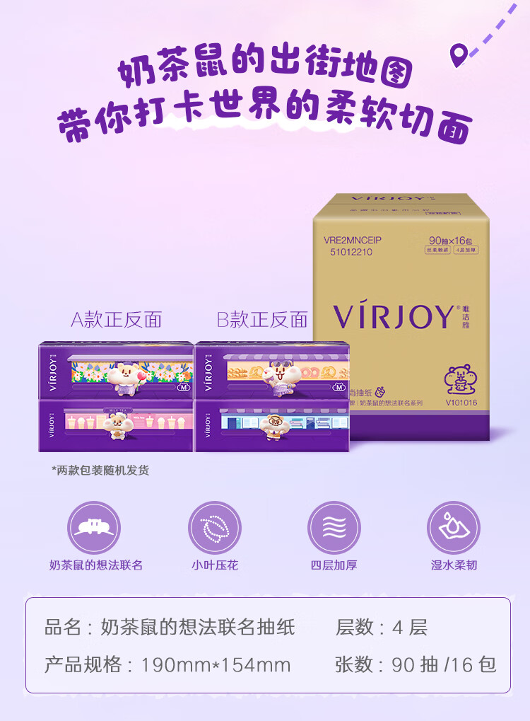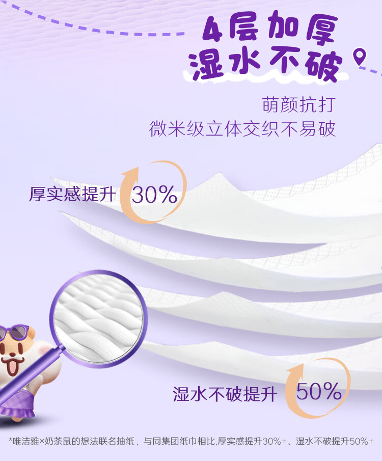 唯洁雅经典时尚4层90抽16包M码抽取式面巾纸