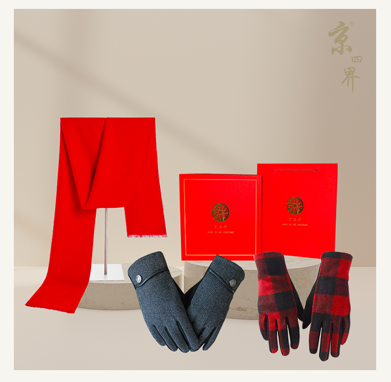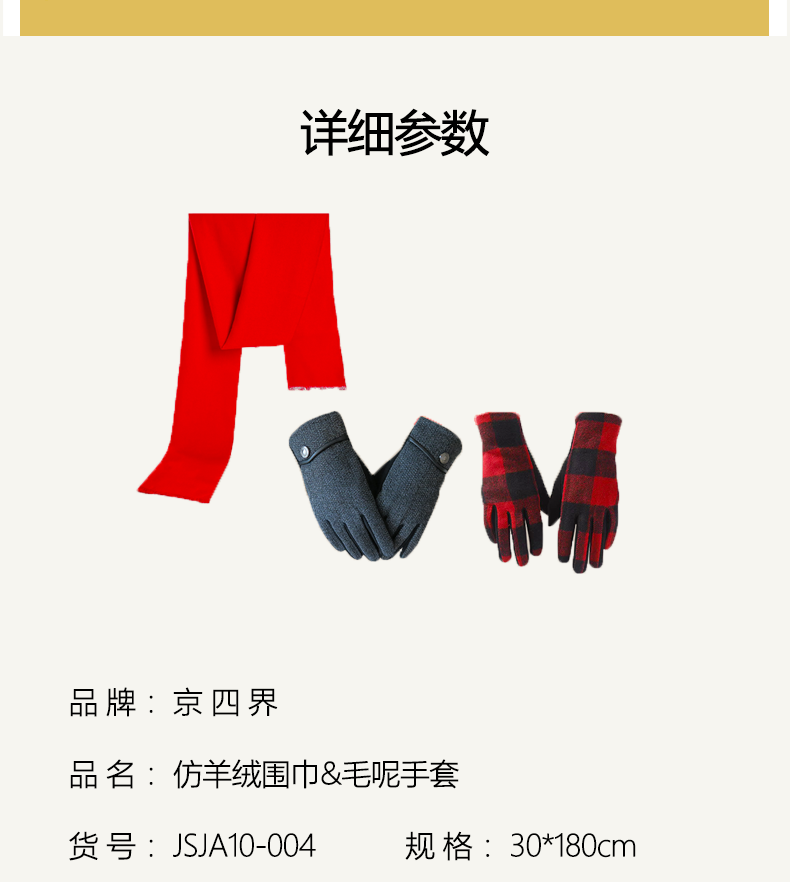 京四界·仿羊绒围巾&毛呢手套 套装JSJA10-004