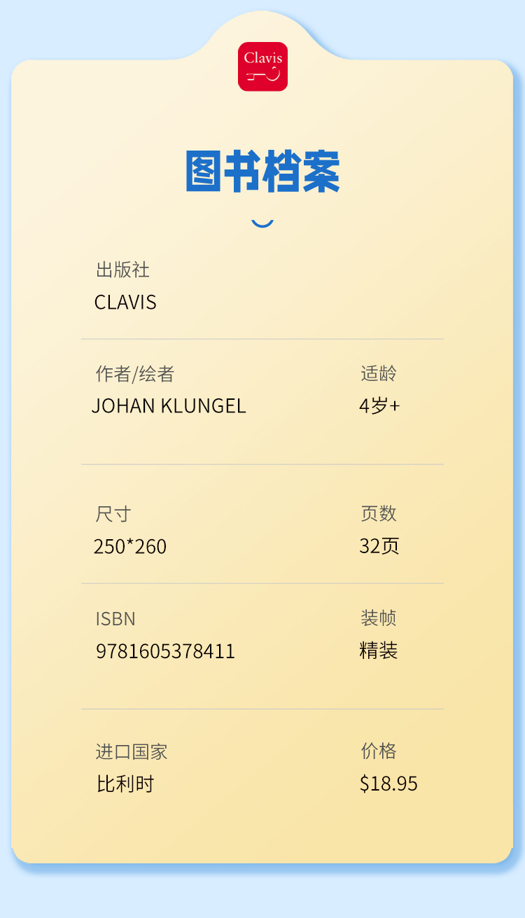 Clavis 是一家总部位于比利时,拥有46年儿童和青少年书籍出版经验的出版集团。跻身欧洲地区“顶流绘本”出版行列,Clavis 一词取自拉丁语,意为“金钥匙”。金钥匙启动智慧之门,帮助孩子梦想成真!