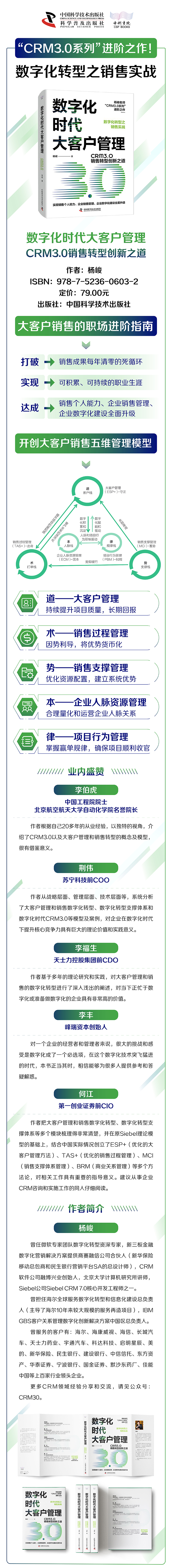 杨峻老师“CRM3.0系列”的进阶之作。在数字化时代转型落地实践中,重点介绍顶尖大客户销售的成长之道。