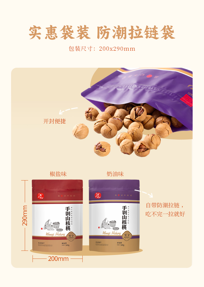 【手剥山核桃500g】汪记手剥山核桃小核桃零食坚果临安山核桃椒盐奶油味袋装