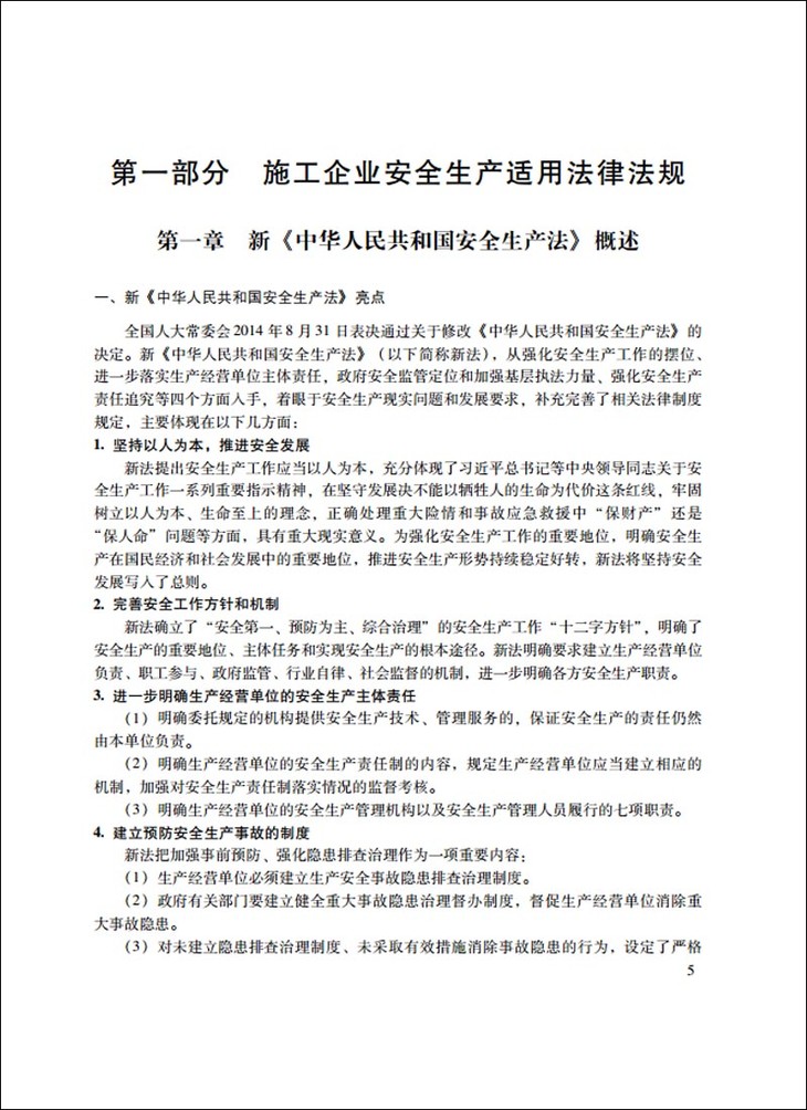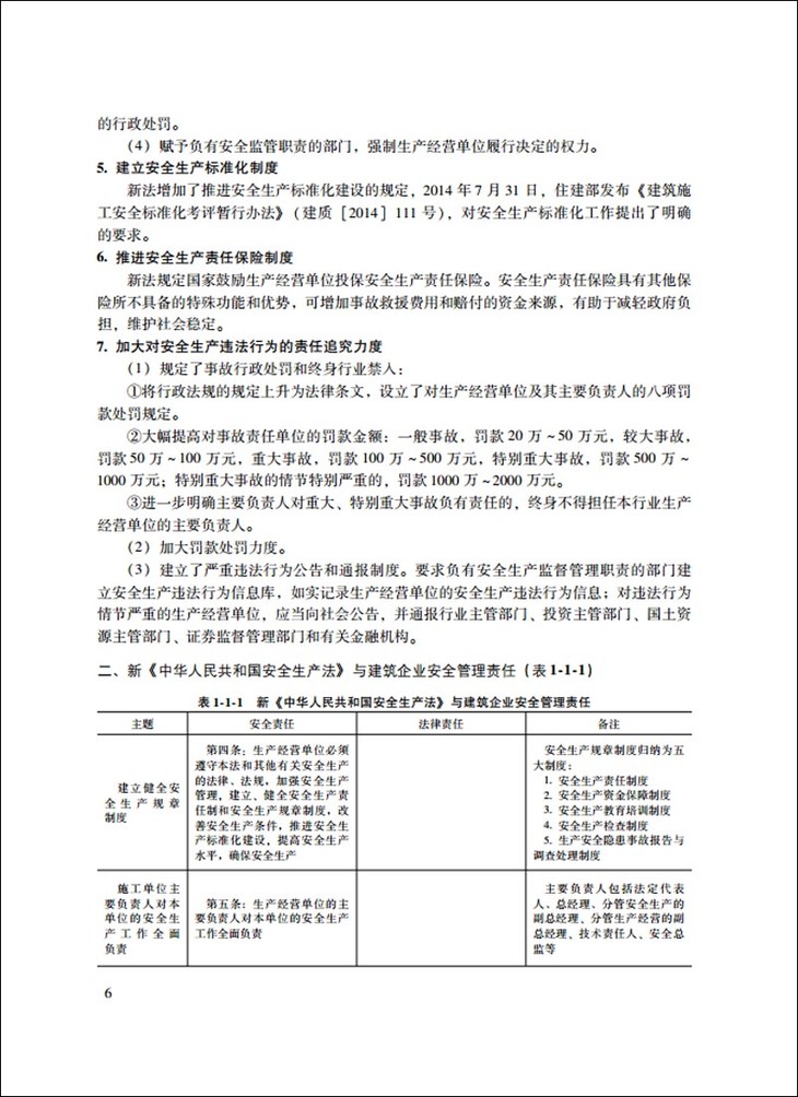 一、全面介绍新《中华人民共和国安全生产法》与建筑施工企业相关条文,并将施工企业安全责任与法律责任做成对照表,使之一目了然,便于学习和查阅。