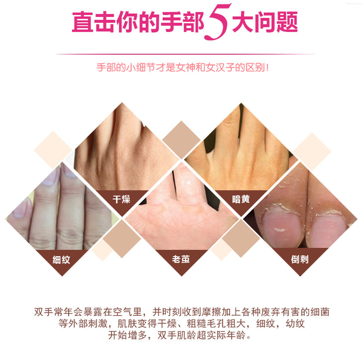 可改善手部肌肤粗糙、龟裂现象,令双手柔滑细腻。也可用来护理足部皮肤,对抗衰老,对干性、衰老性皮肤有特效。
