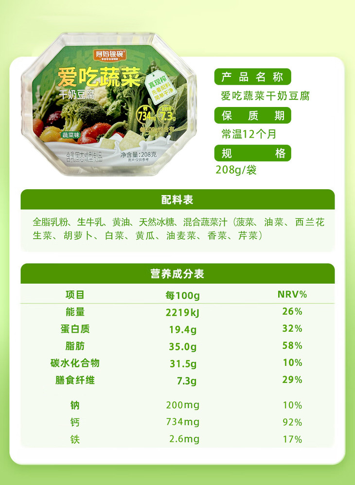 【好吃又高钙】干奶豆腐饼干 高钙零食 每100克含557毫克钙 内蒙古特色 原味不含蔗糖无添加 蔬菜味含天然冰糖