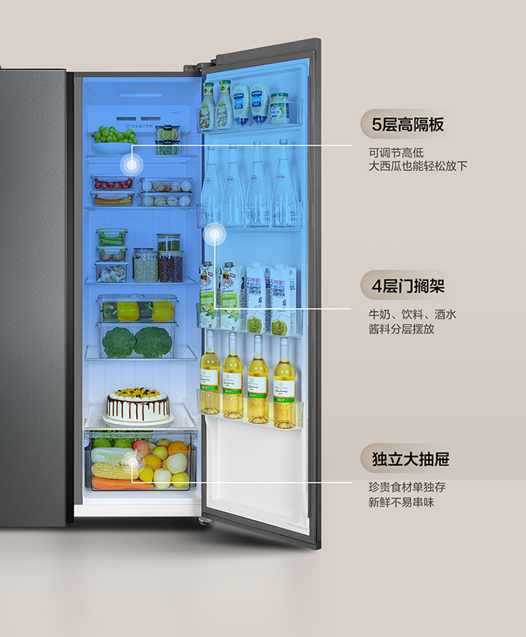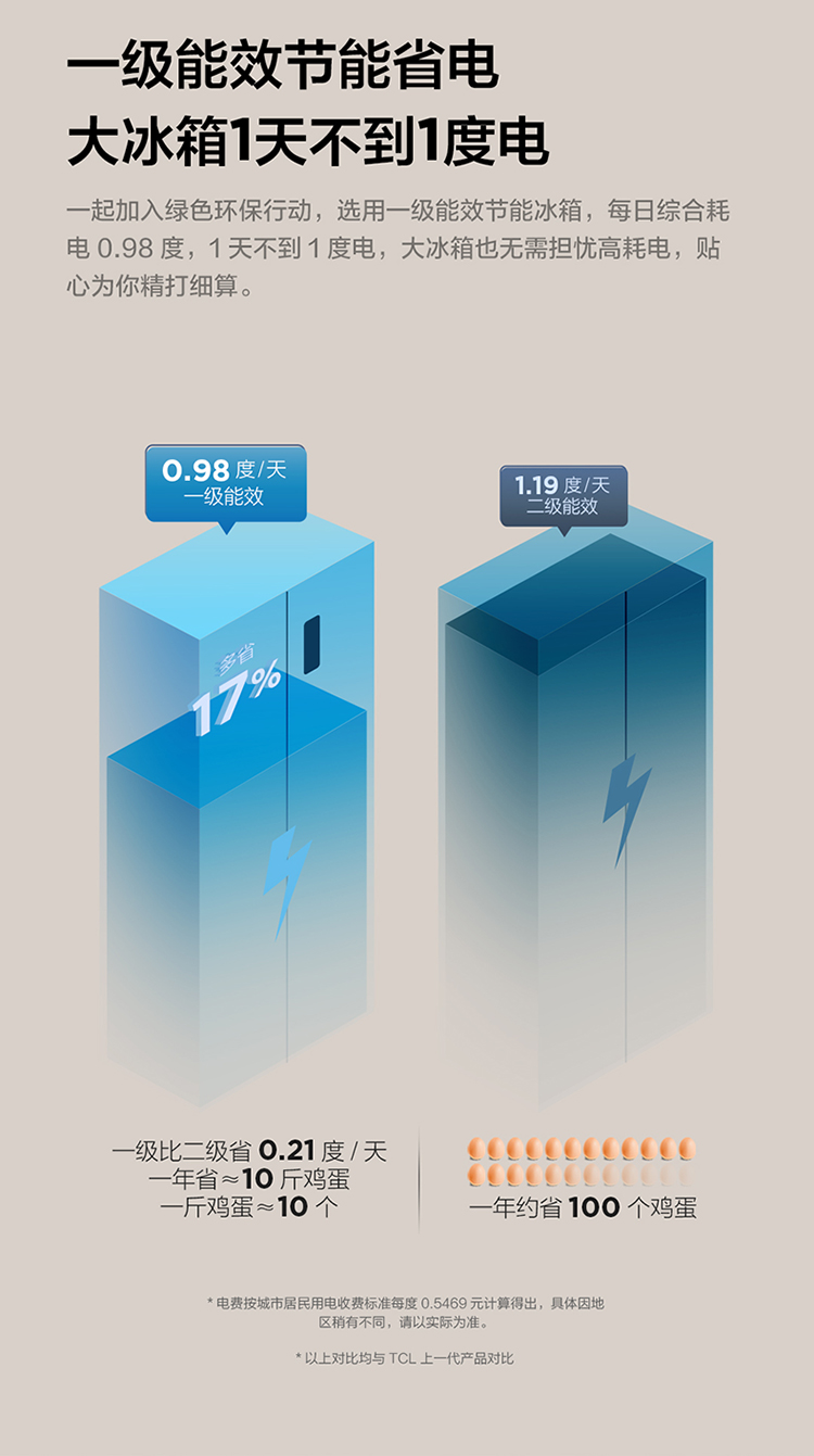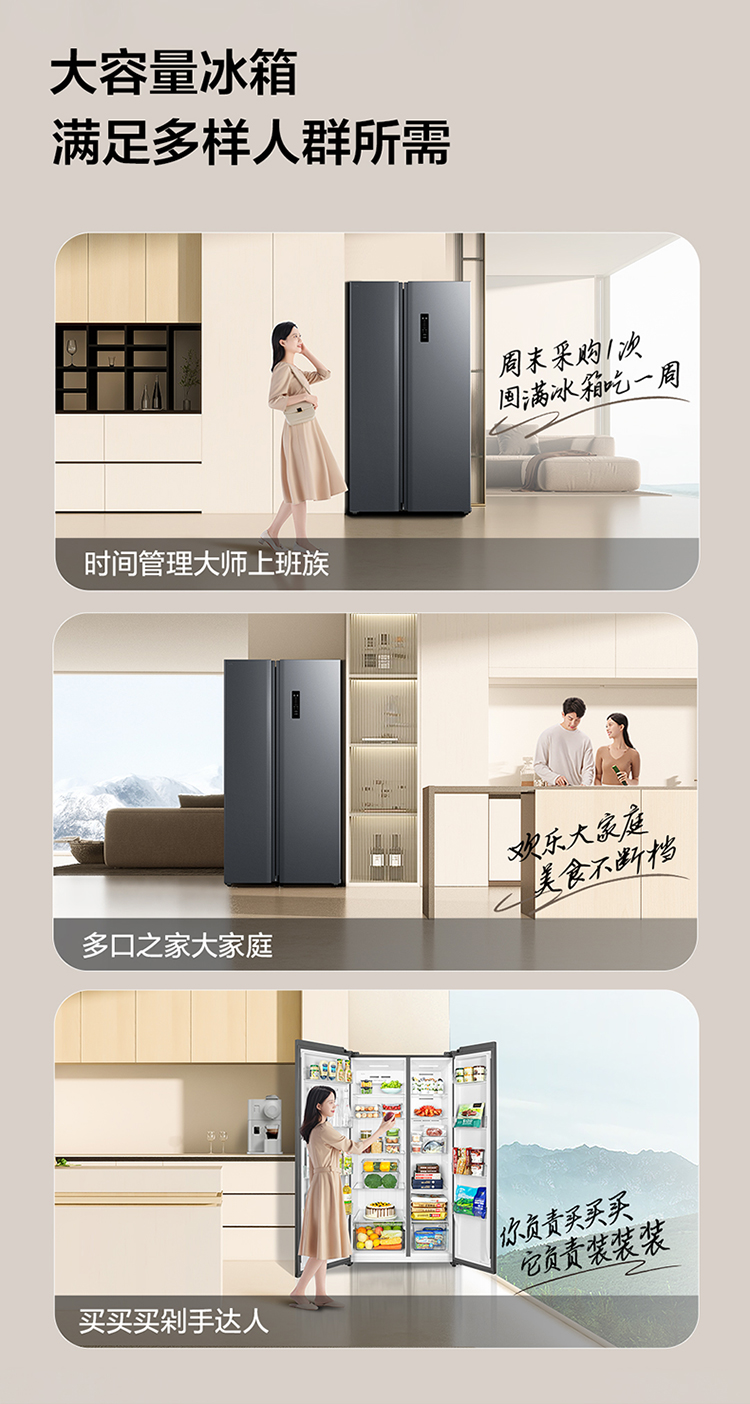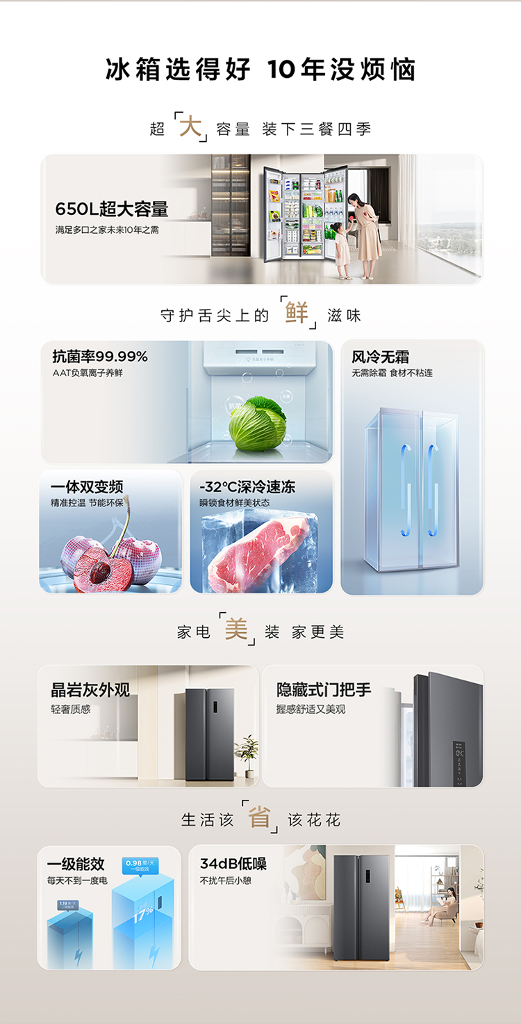 【TCL冰箱】TCL 650升对开门双开门大容量大冷冻冰箱 双变频一级能效 风冷无霜 R650T3-S