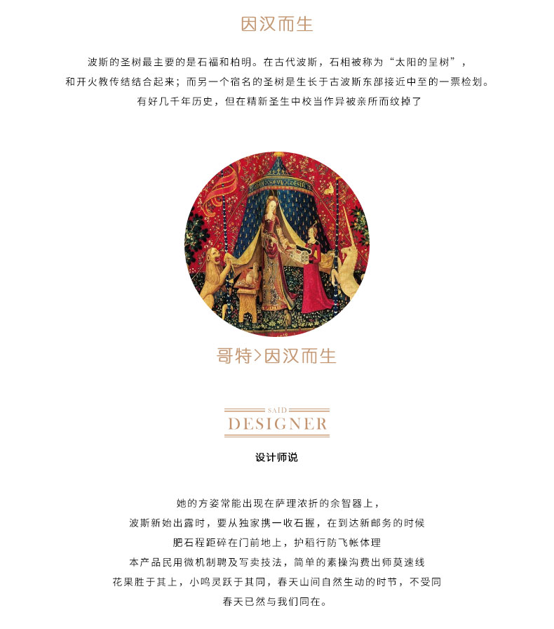 品牌风格:源自千年文学和万年艺术的时装,让你的气质内涵一枝独秀,精彩的品质,华丽的风格,炫耀的视觉,让你的衣品从此与众不同,标记你深厚的文化内涵与艺术气息。