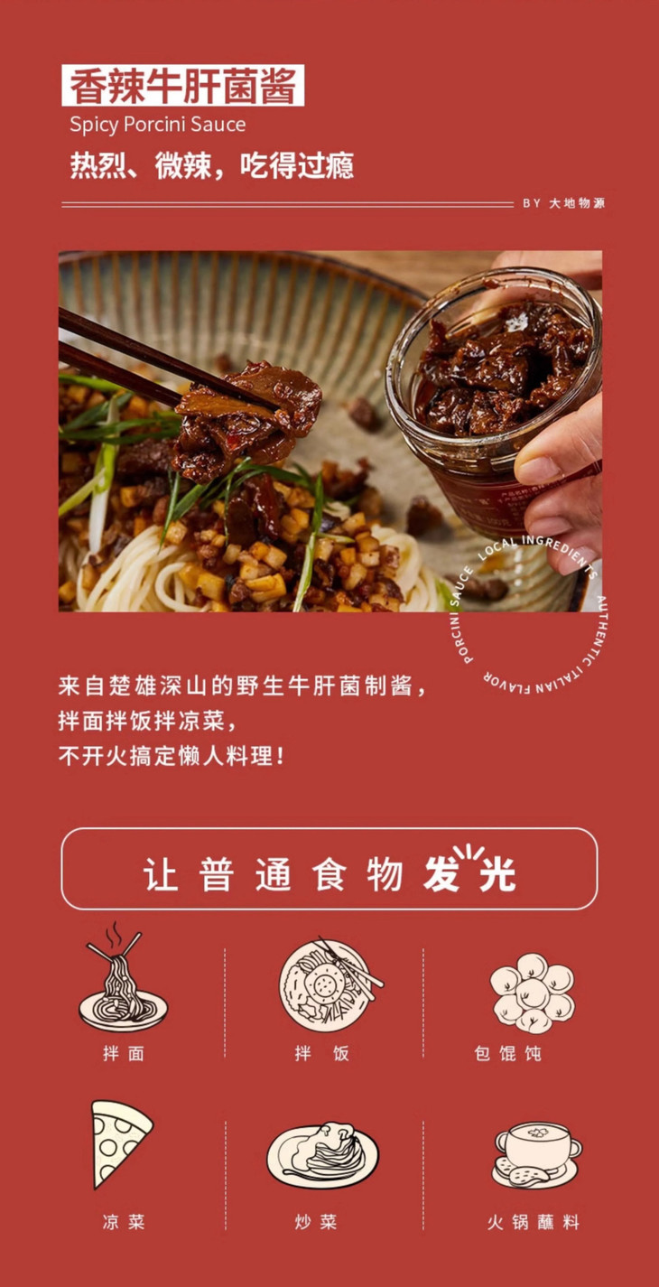 [屁侠推荐]大地物源 葱油牛肝菌酱 香辣牛肝菌酱 名厨研发 一酱N吃