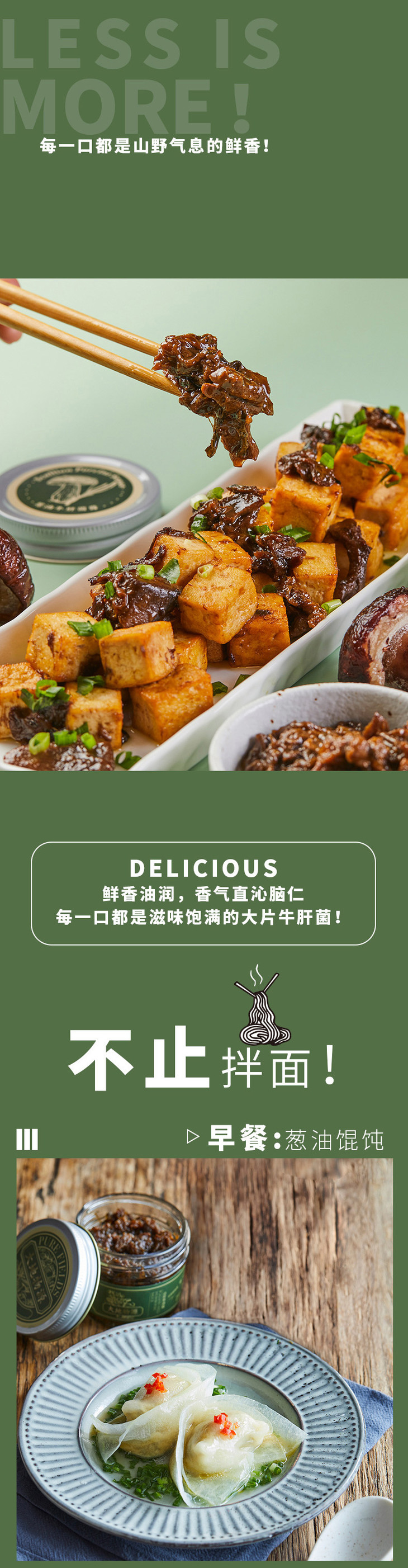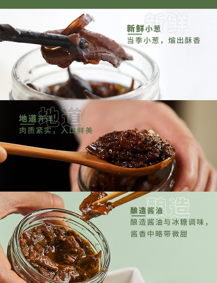 葱油牛肝菌酱是江南大厨做的海派本帮风味,葱香非常扎实,因为用了新鲜细嫩的小葱,耐心熬了三四个小时,每一根都被煸出酥香,鲜甜也将菌香衬托得更加饱满,开瓶就忍不住流口水.....只用酱油和冰糖调味,拌一切碳水都好吃,特别讨喜,也不挑人!