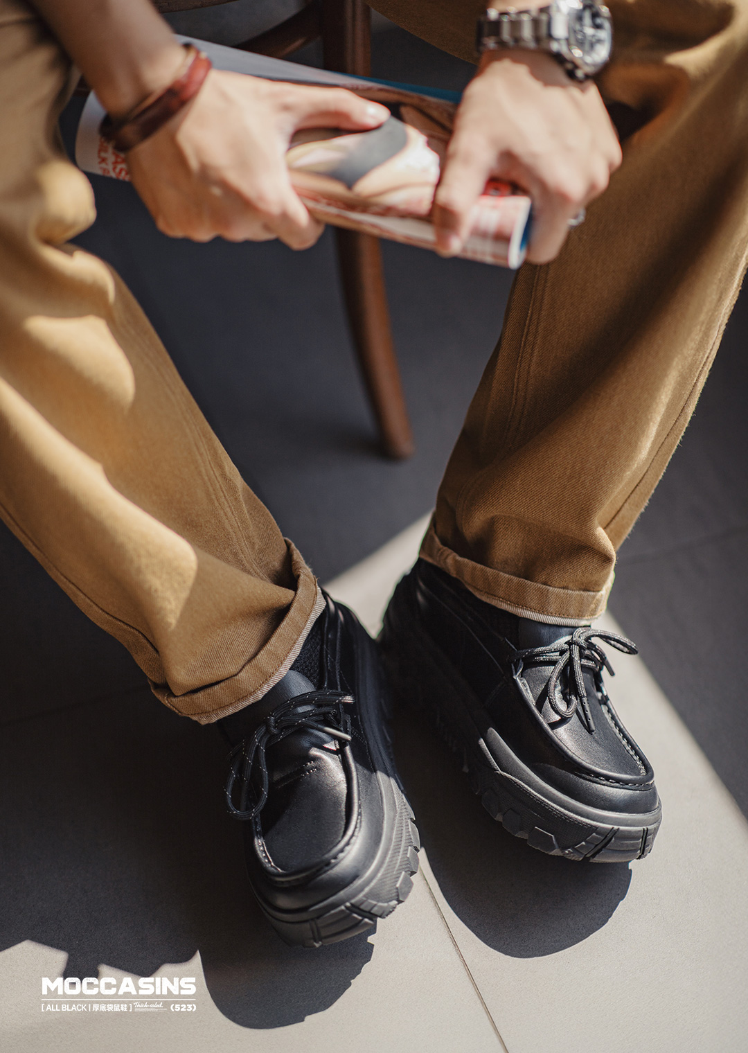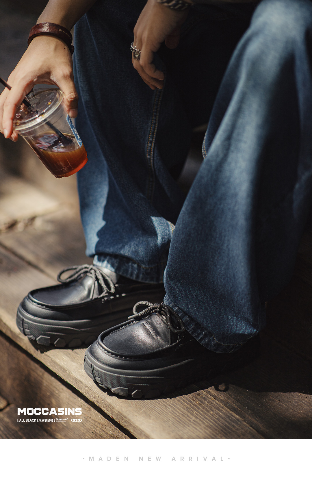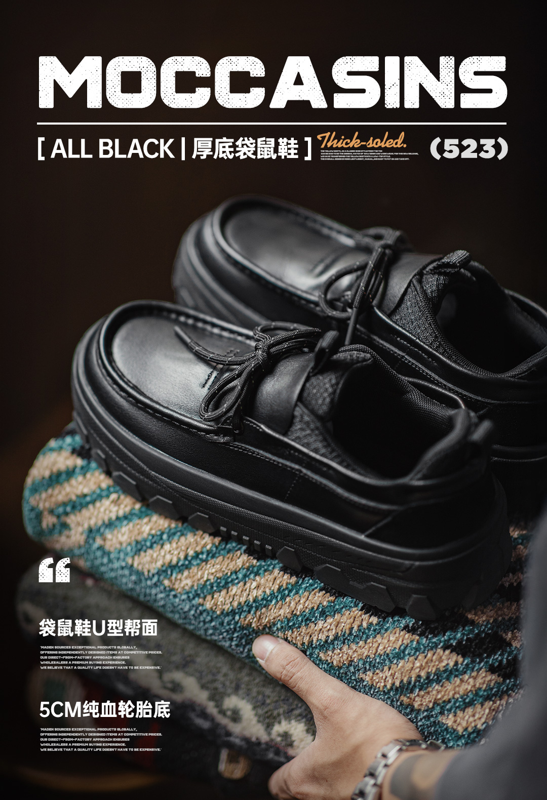 马登袋鼠鞋冬季新款男士厚底增高黑色通勤英伦风软底方头休闲皮鞋