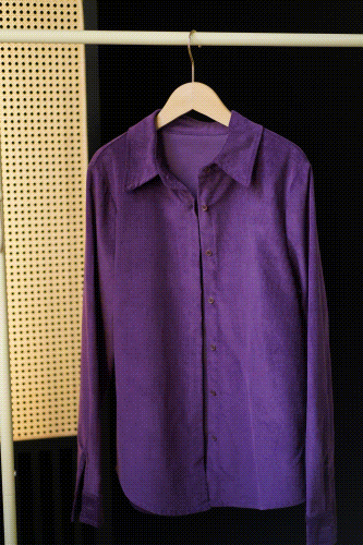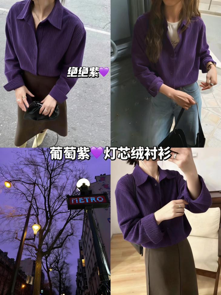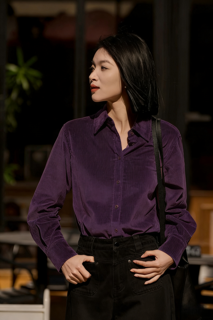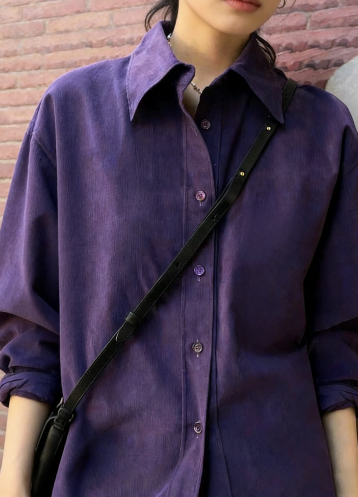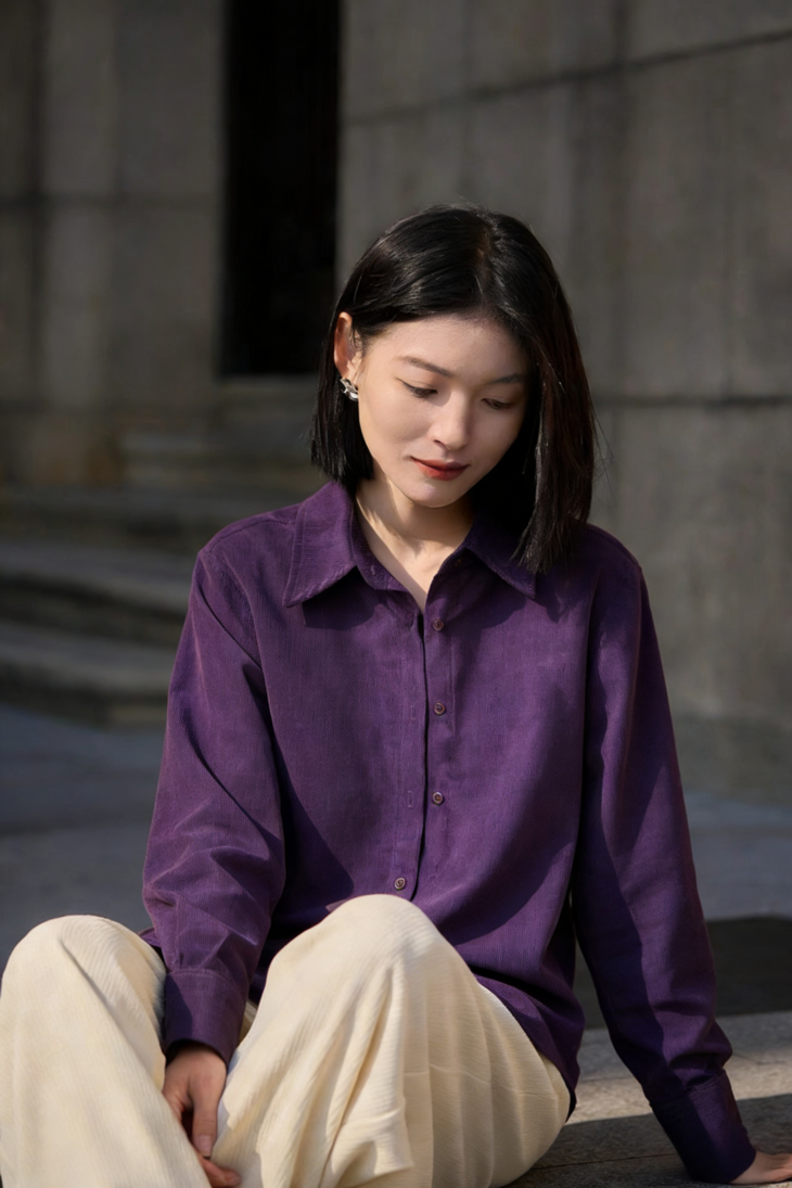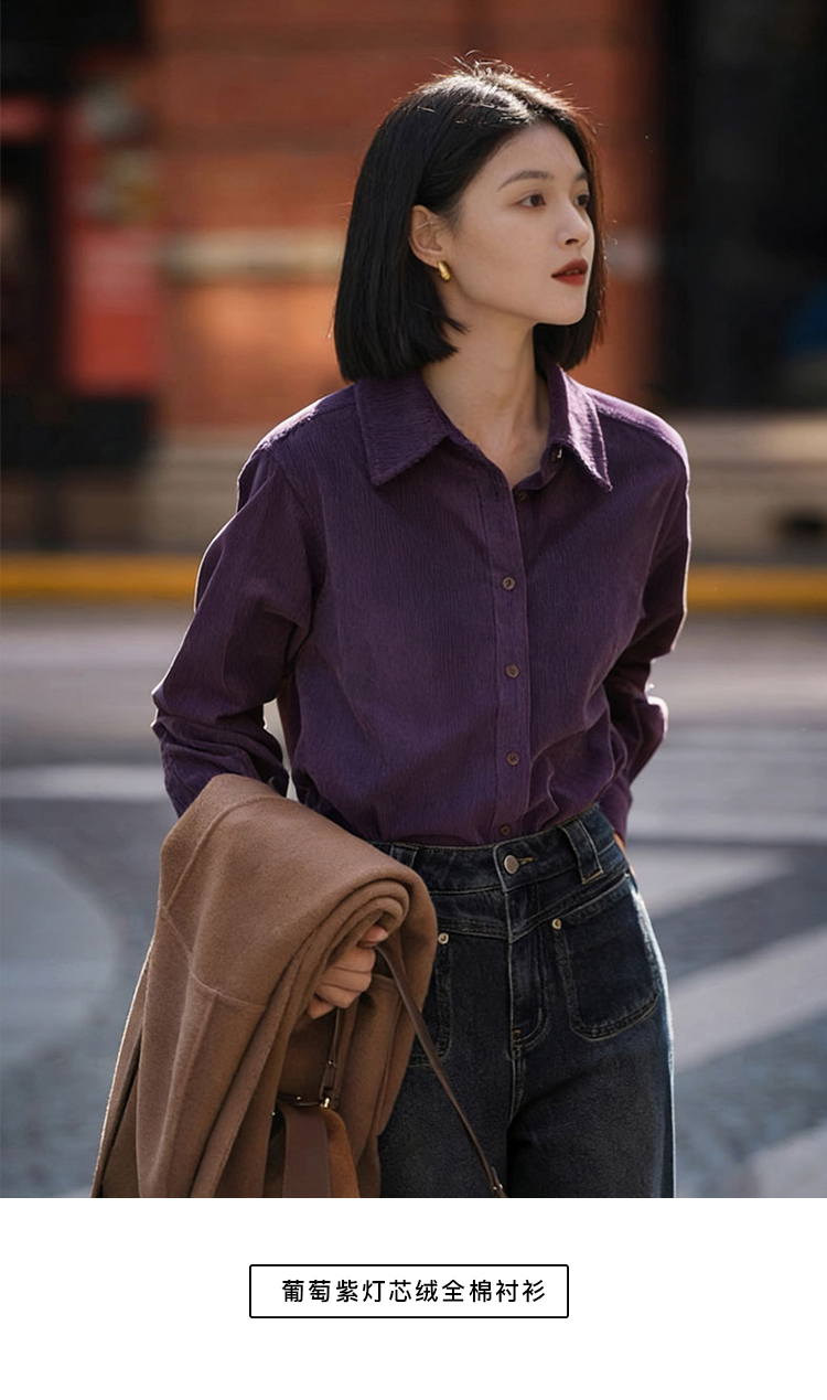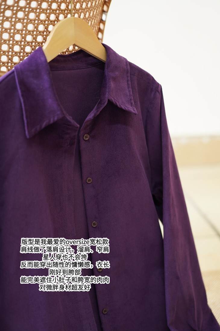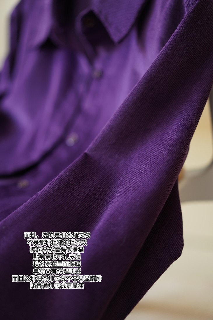 今天给大家推荐这一件——葡萄紫灯芯绒全棉衬衫。