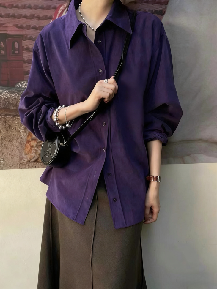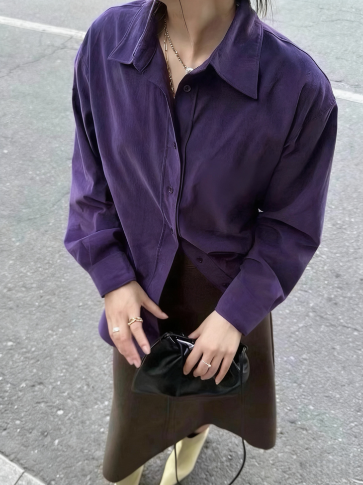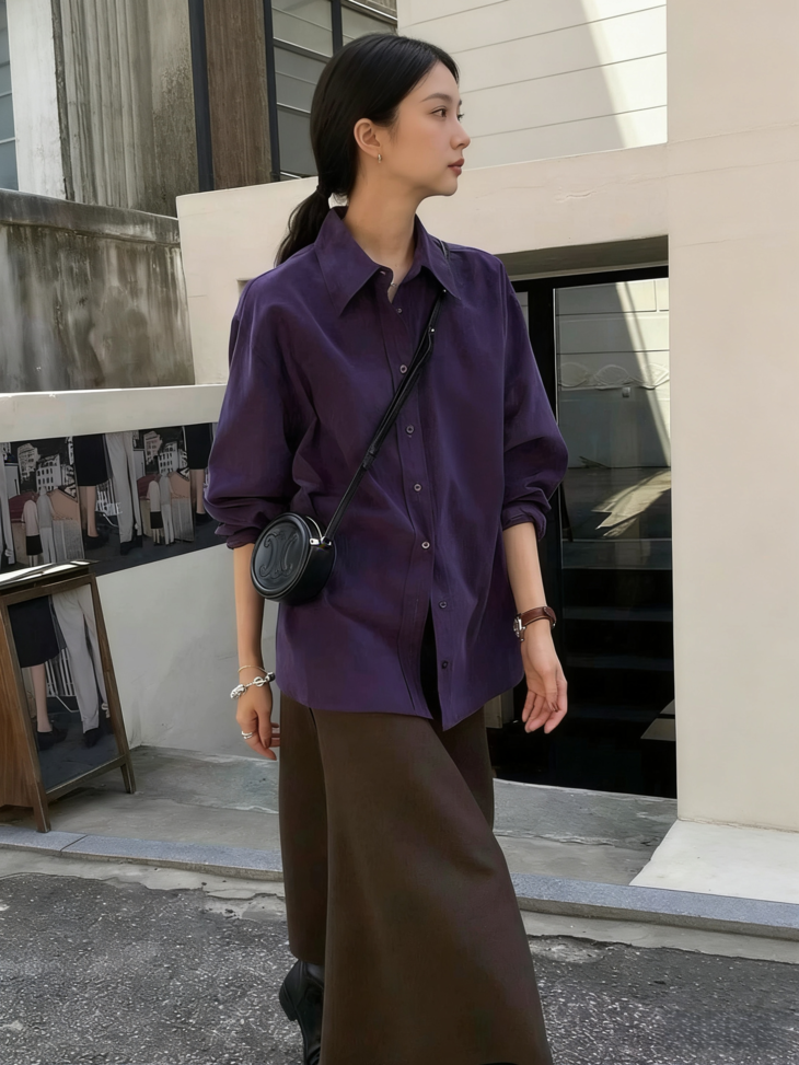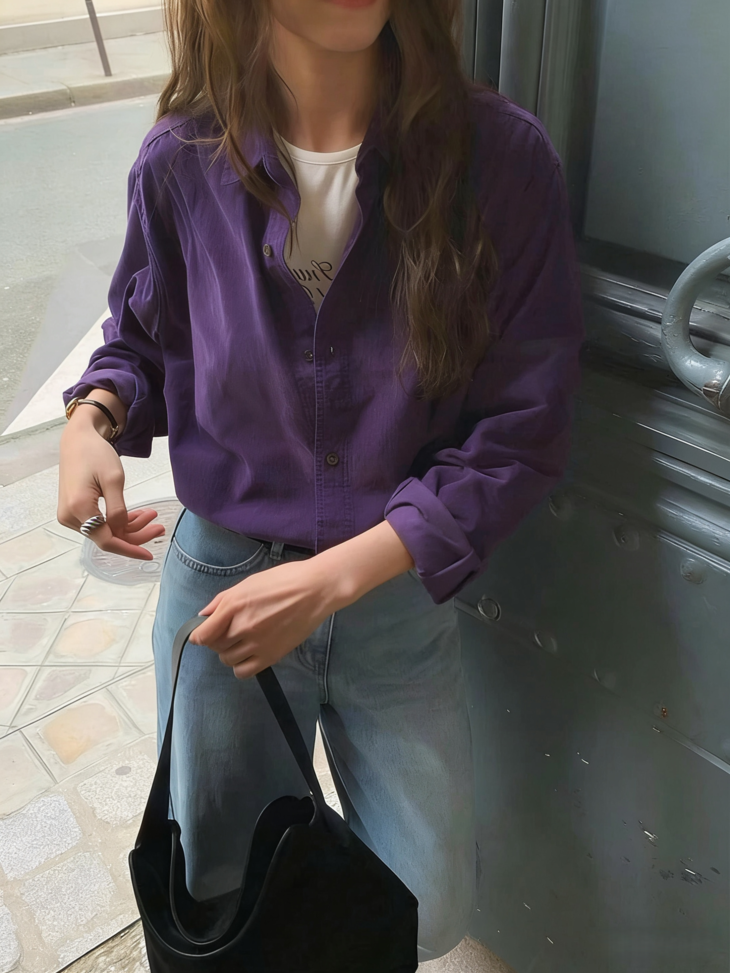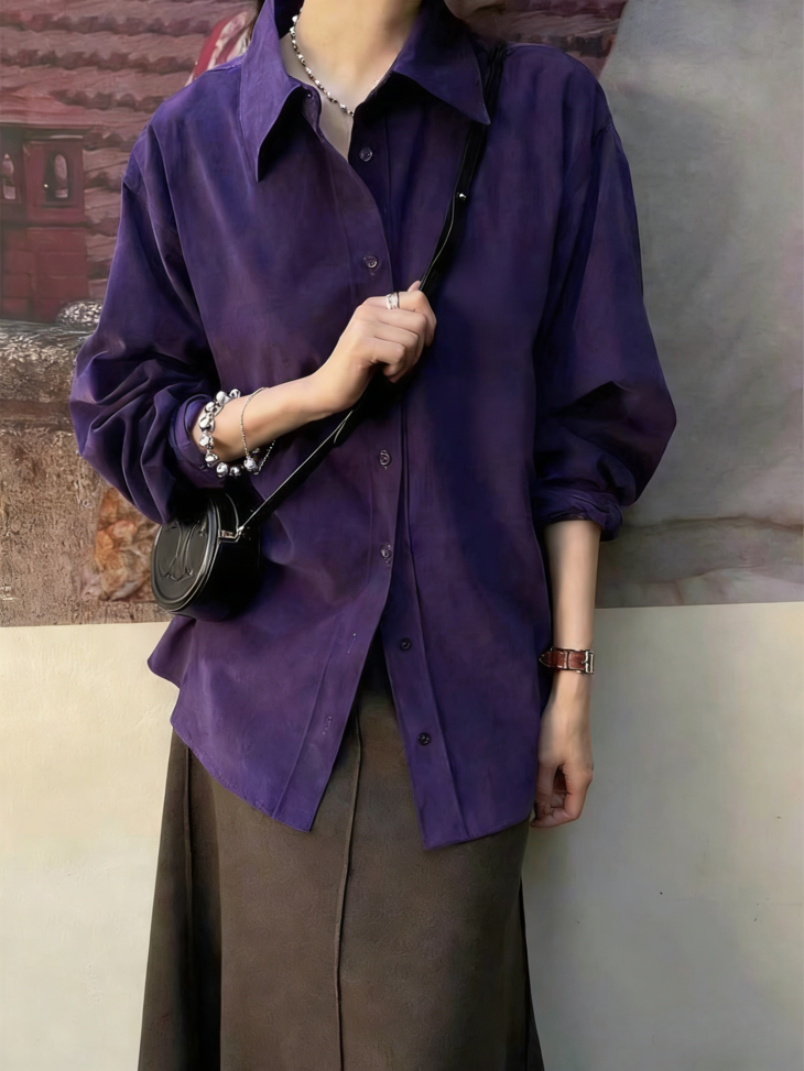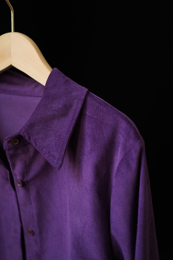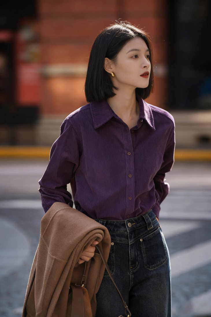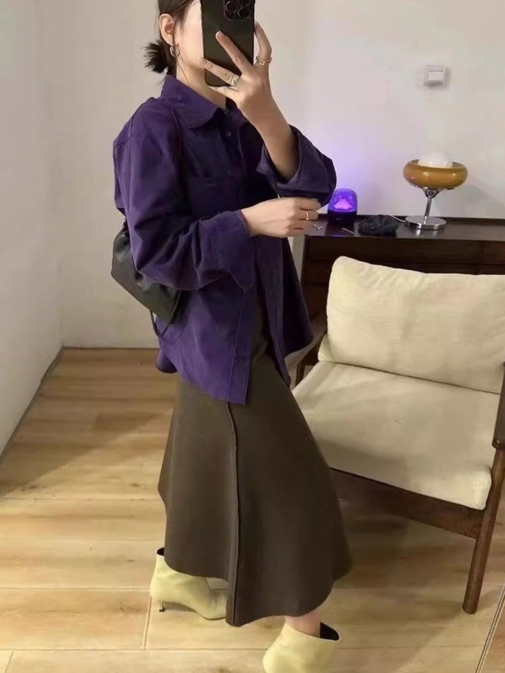 今天给大家推荐这一件——葡萄紫灯芯绒全棉衬衫。