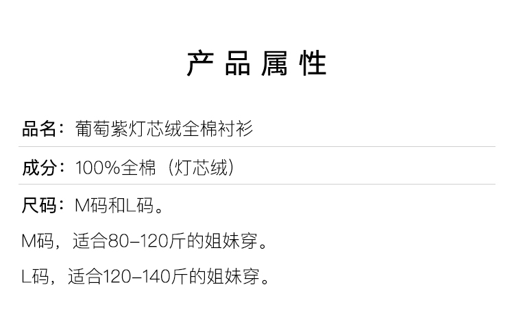 【99特惠】葡萄紫灯芯绒全棉衬衫 | 全棉灯芯绒,手感柔和厚实。显白、高级、百搭,2个尺码,80-140斤都能穿【3-7天发货,周末顺延】