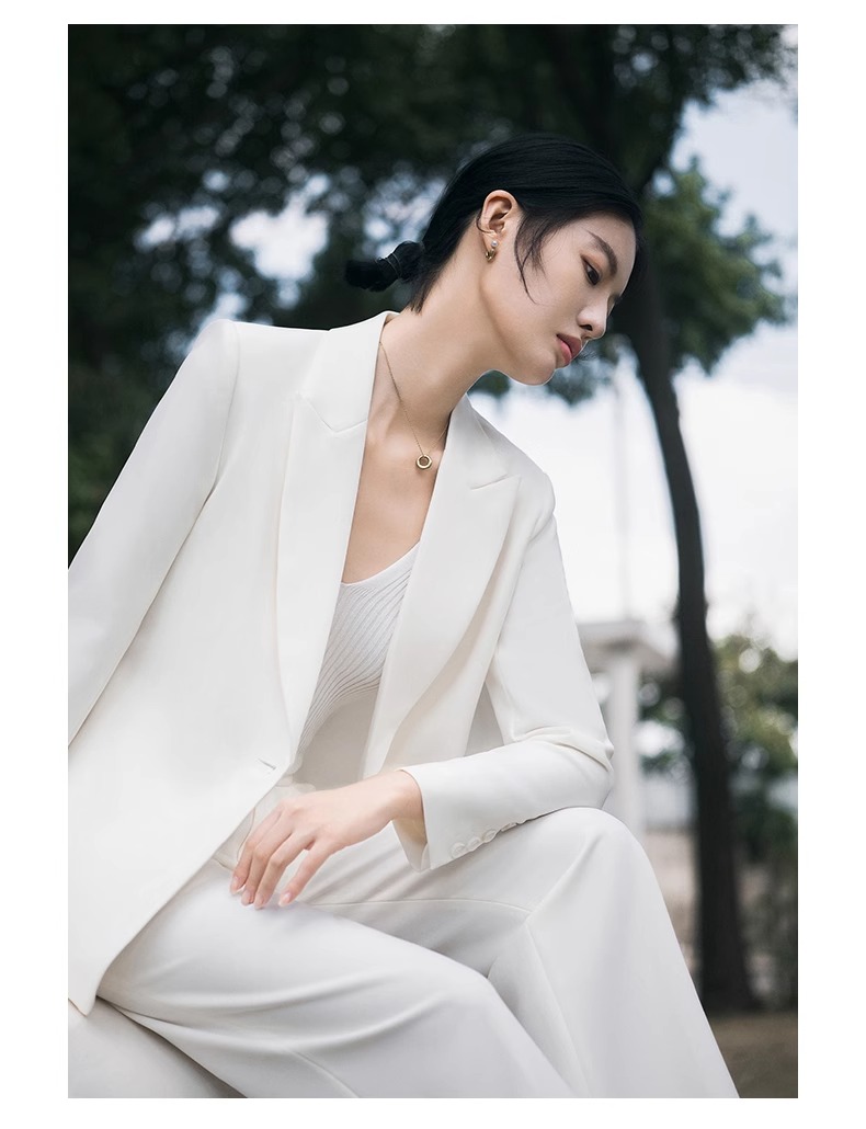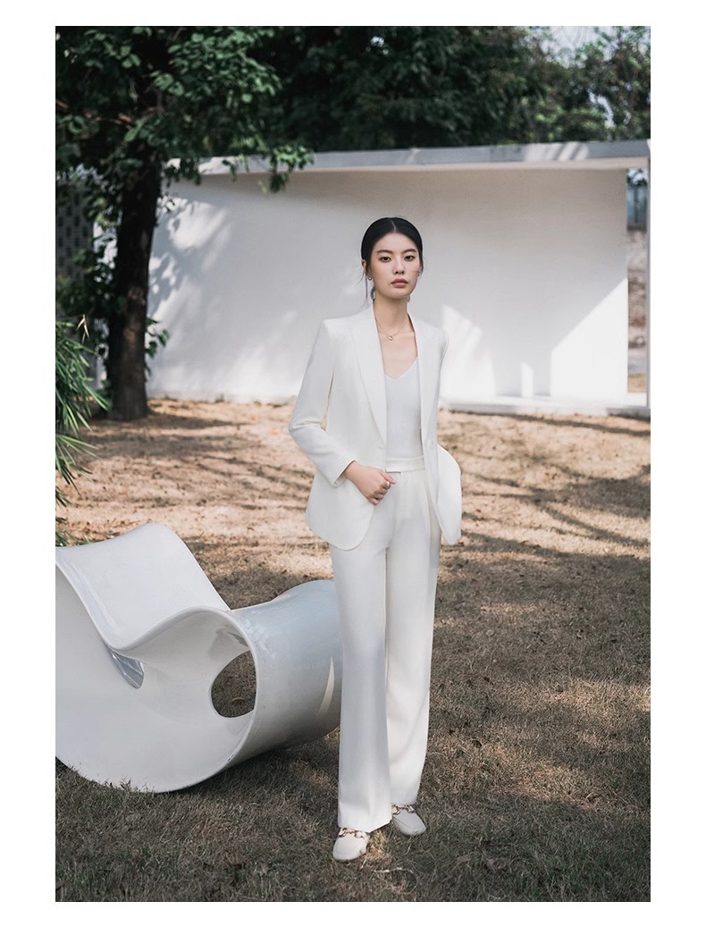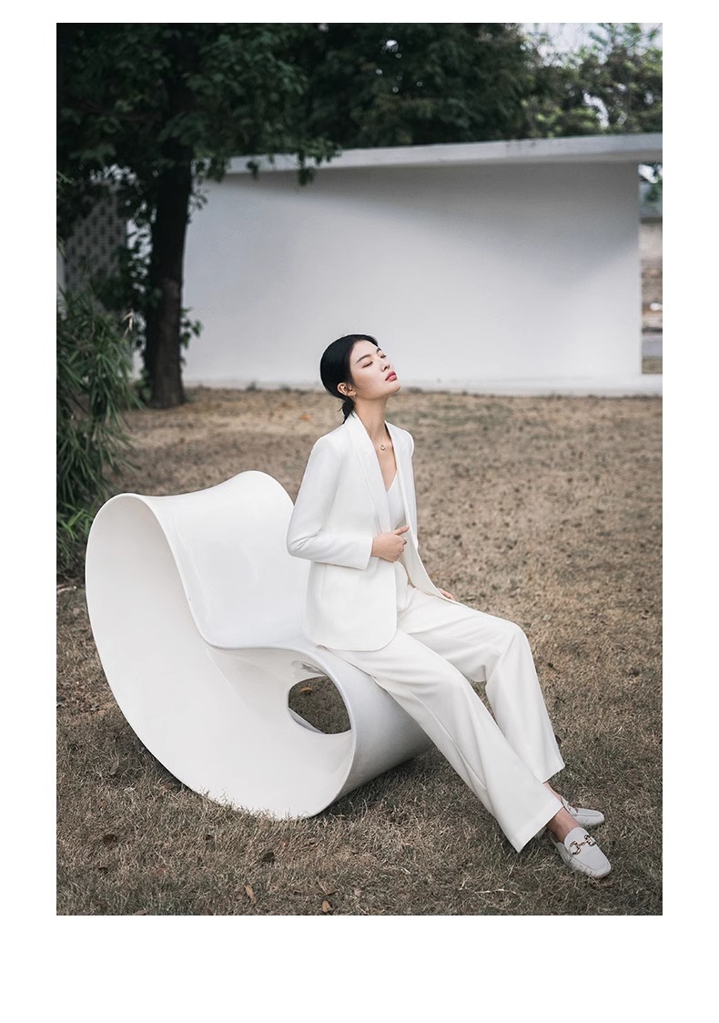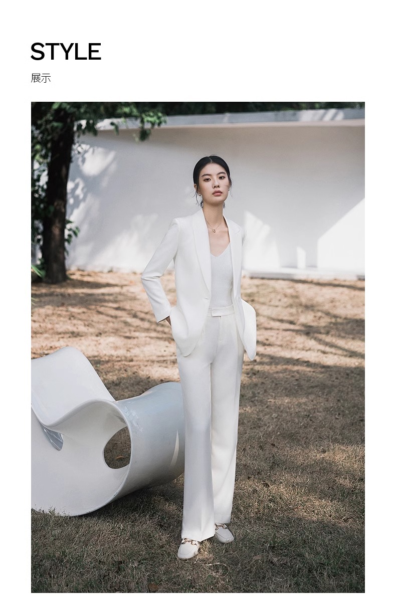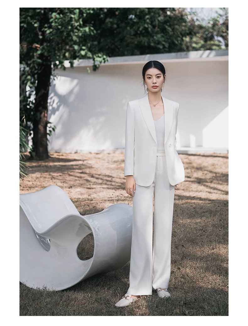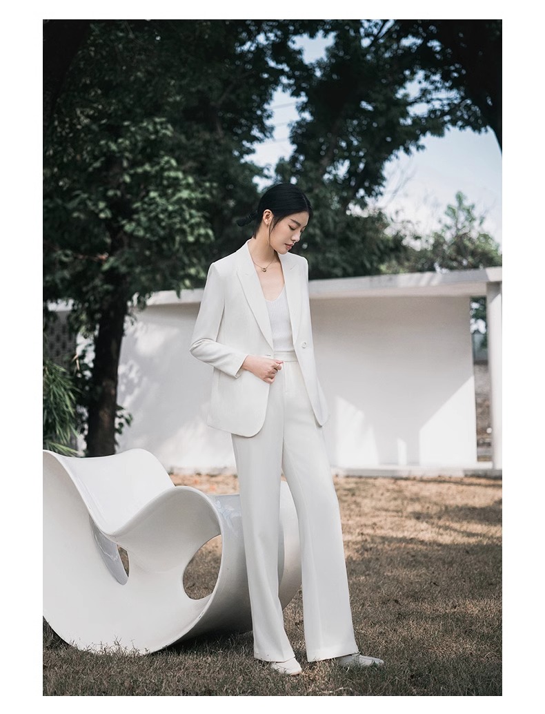 白色高级感休闲西装慵懒春秋长袖宽松西服两件套商务工作服