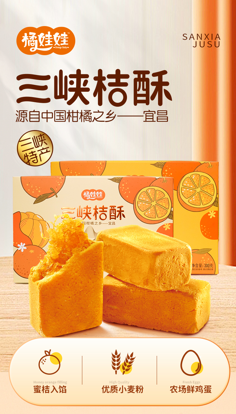 【宜昌助农馆】土老憨 桔子酥300g/盒 传统糕点休闲零食 两口味任选