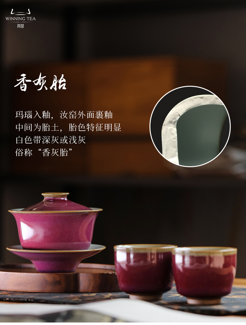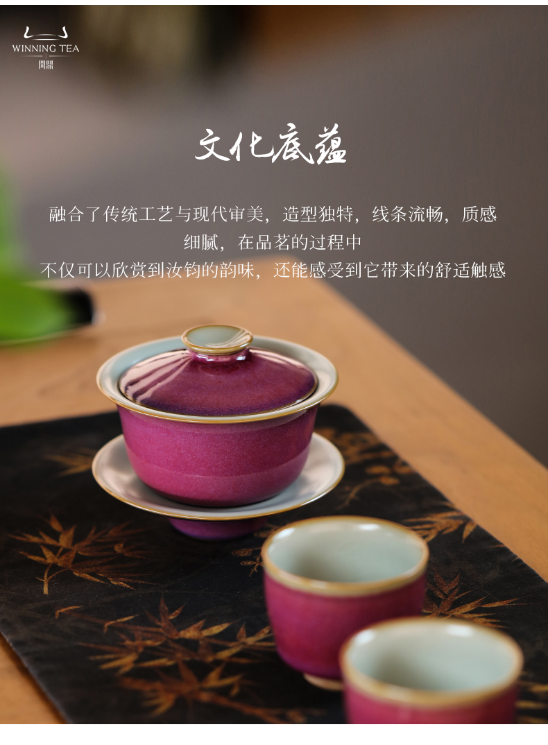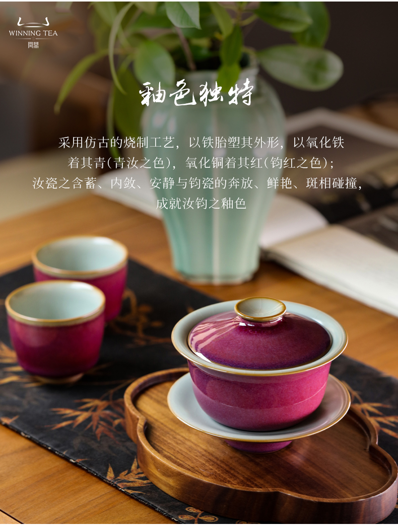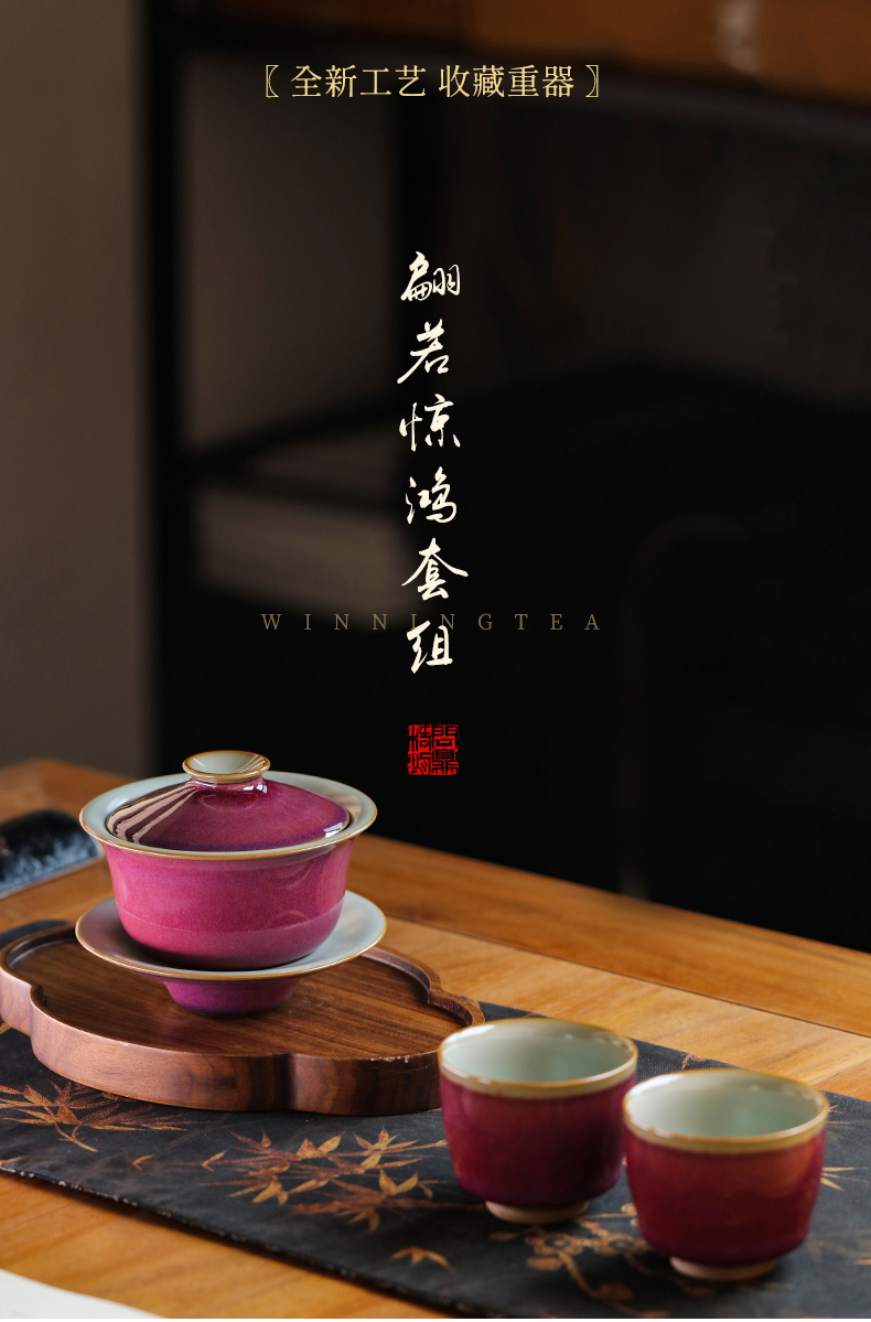 问鼎汝钧系列翩若惊鸿套组(汝钧三才盖碗 朱萼杯)