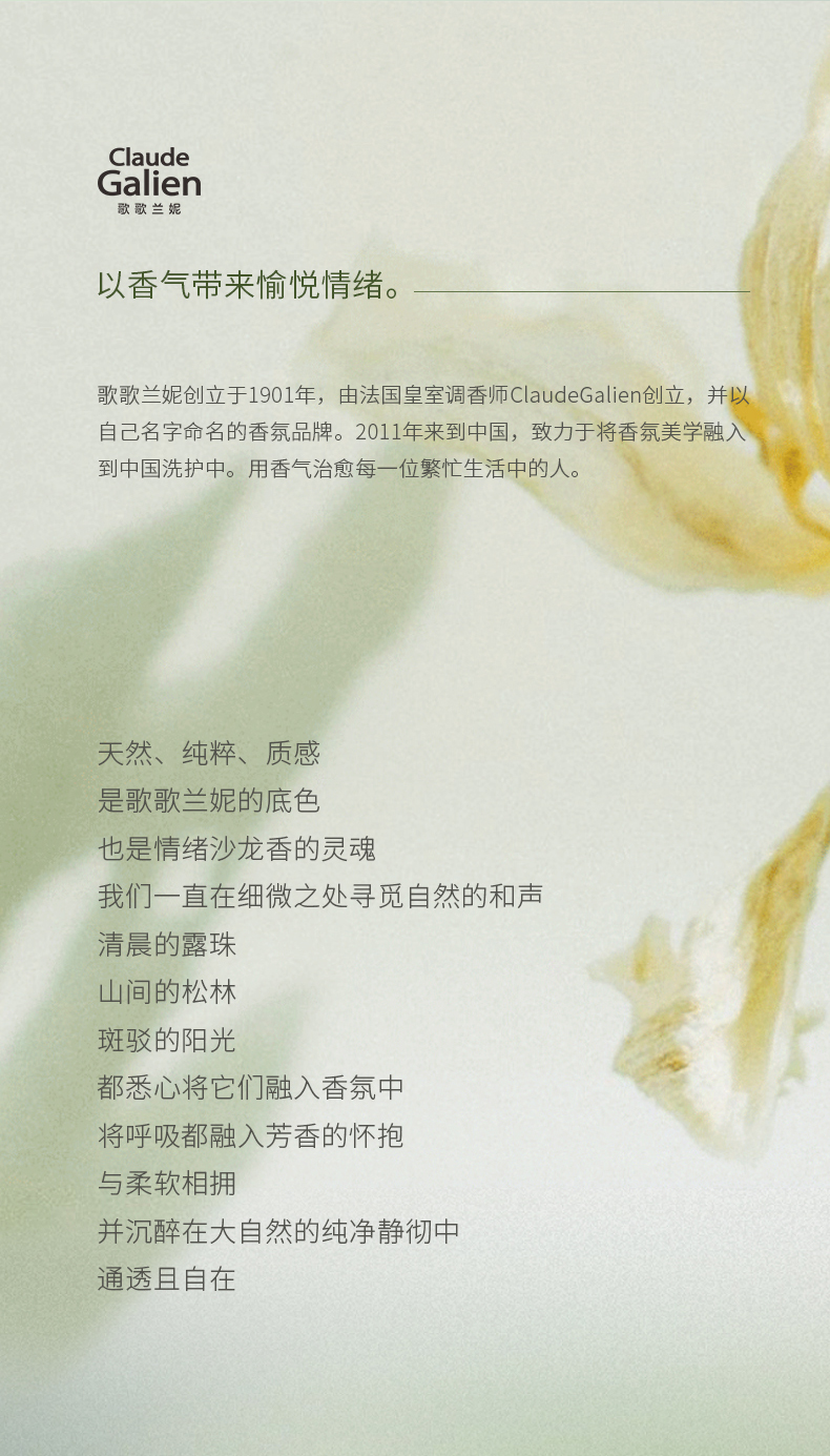 - ClaudeGalien 简称CG,法式精粹沙龙香氛品牌,致力于法国香水和中国洗护的结合,被誉为“香氛界的蒂芙尼”—官方品牌
