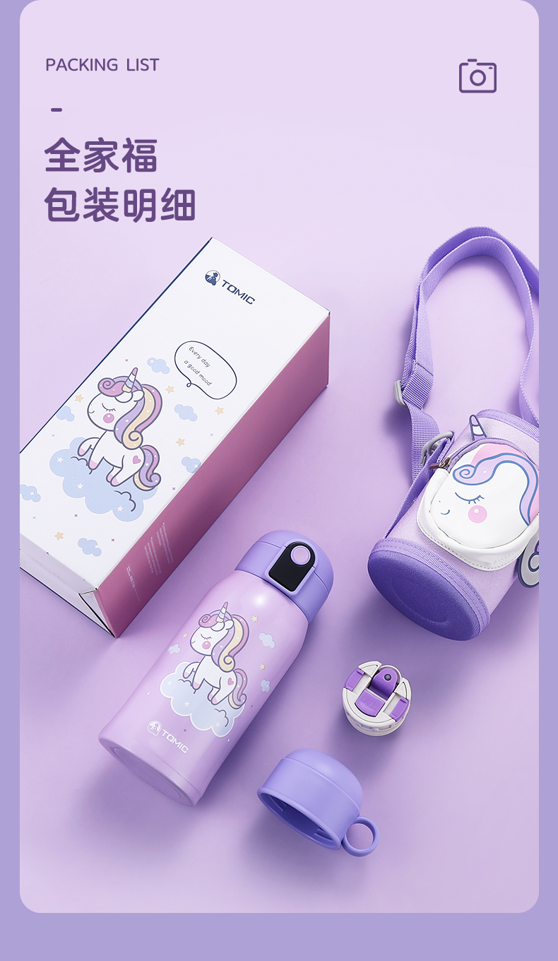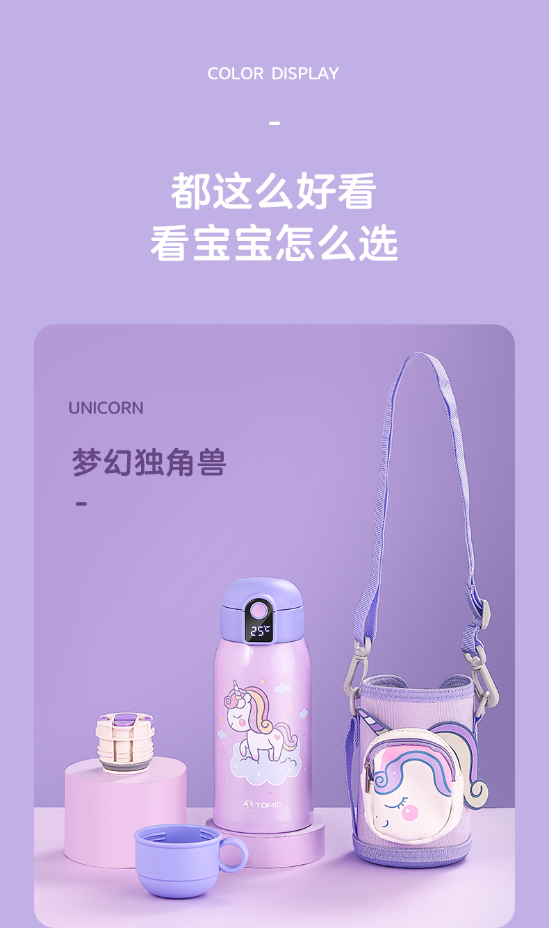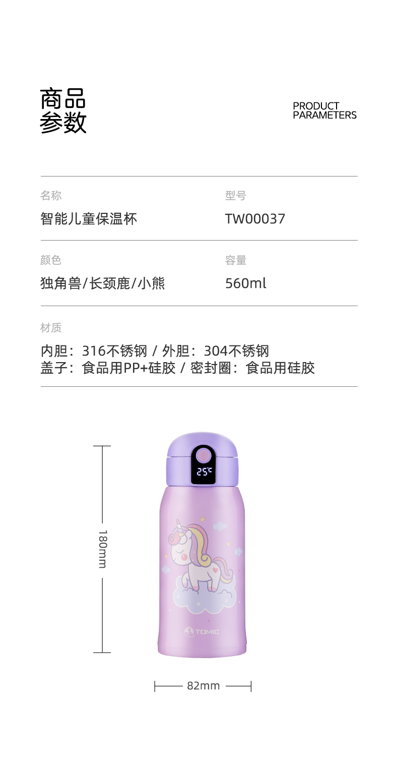 特美刻(TOMIC)儿童保温杯316不锈钢保温水杯壶学生智能水杯便携两用男女宝宝吸管杯 TW00037 独角兽 560ML