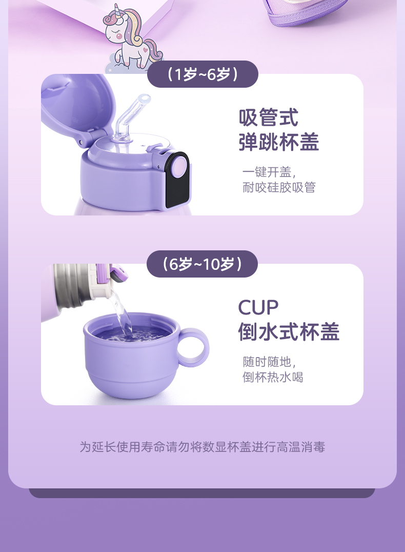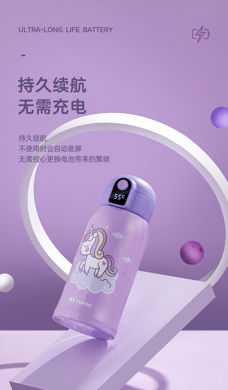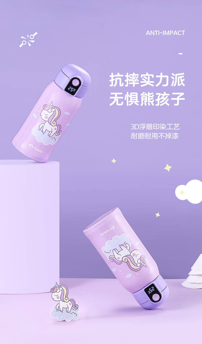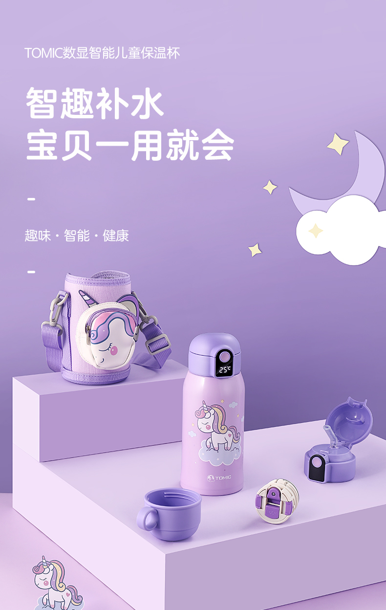 特美刻(TOMIC)儿童保温杯316不锈钢保温水杯壶学生智能水杯便携两用男女宝宝吸管杯 TW00037 独角兽 560ML