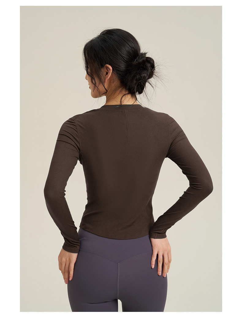 【路路精选】lulu罗纹高弹长袖运动服上衣修身显瘦圆领套头健身服瑜伽长袖休闲无胸垫